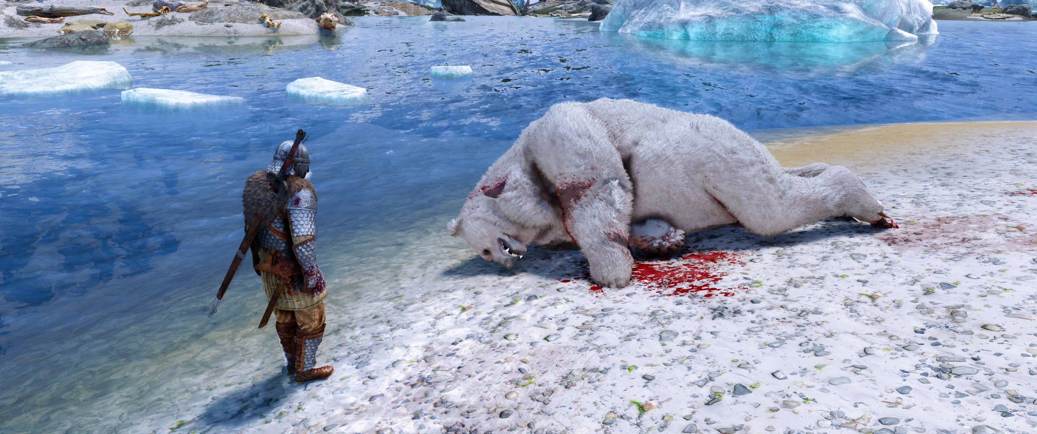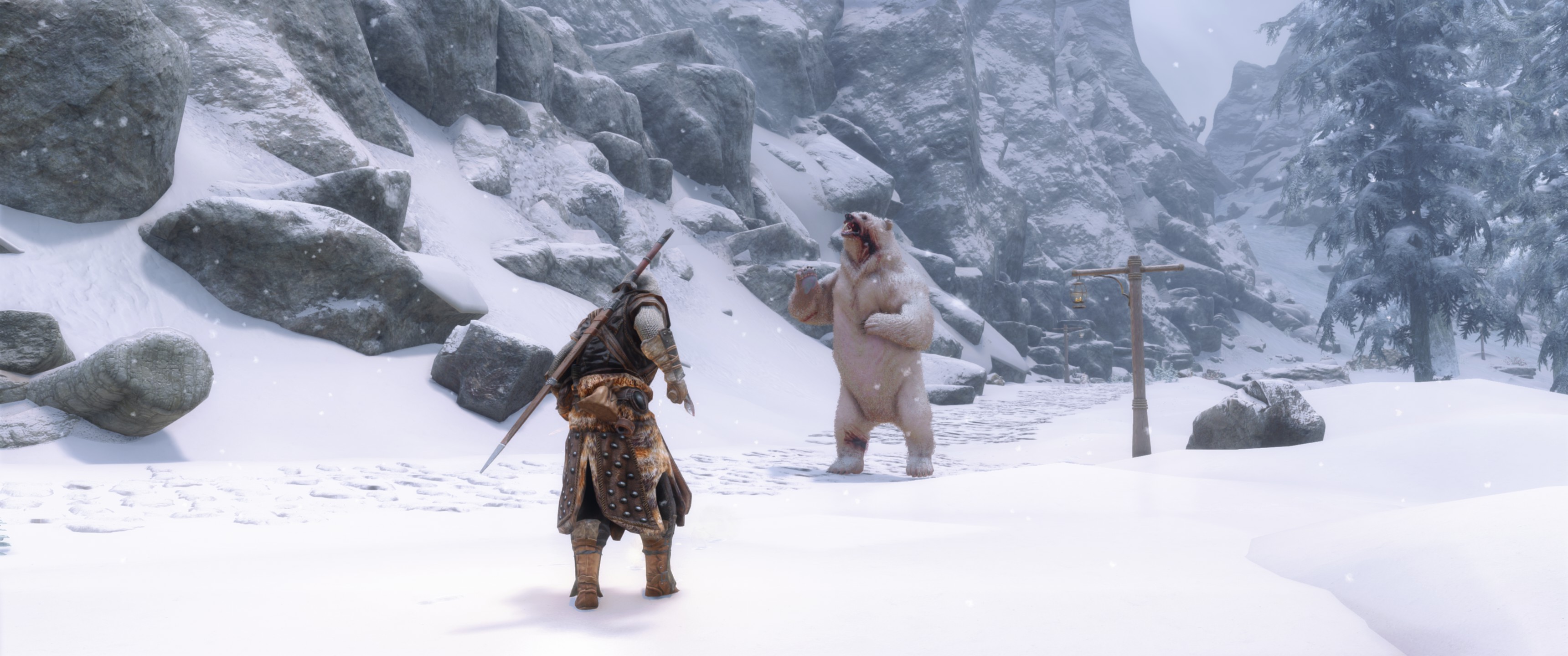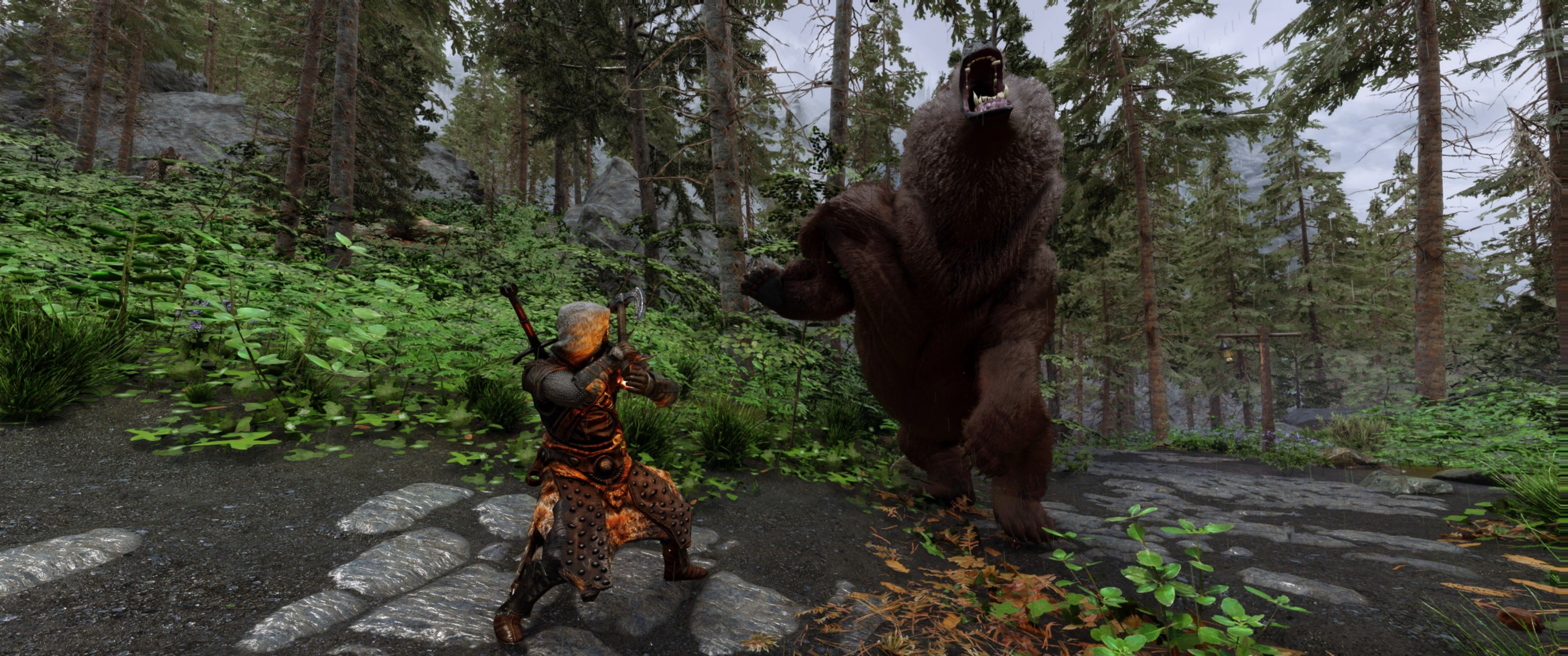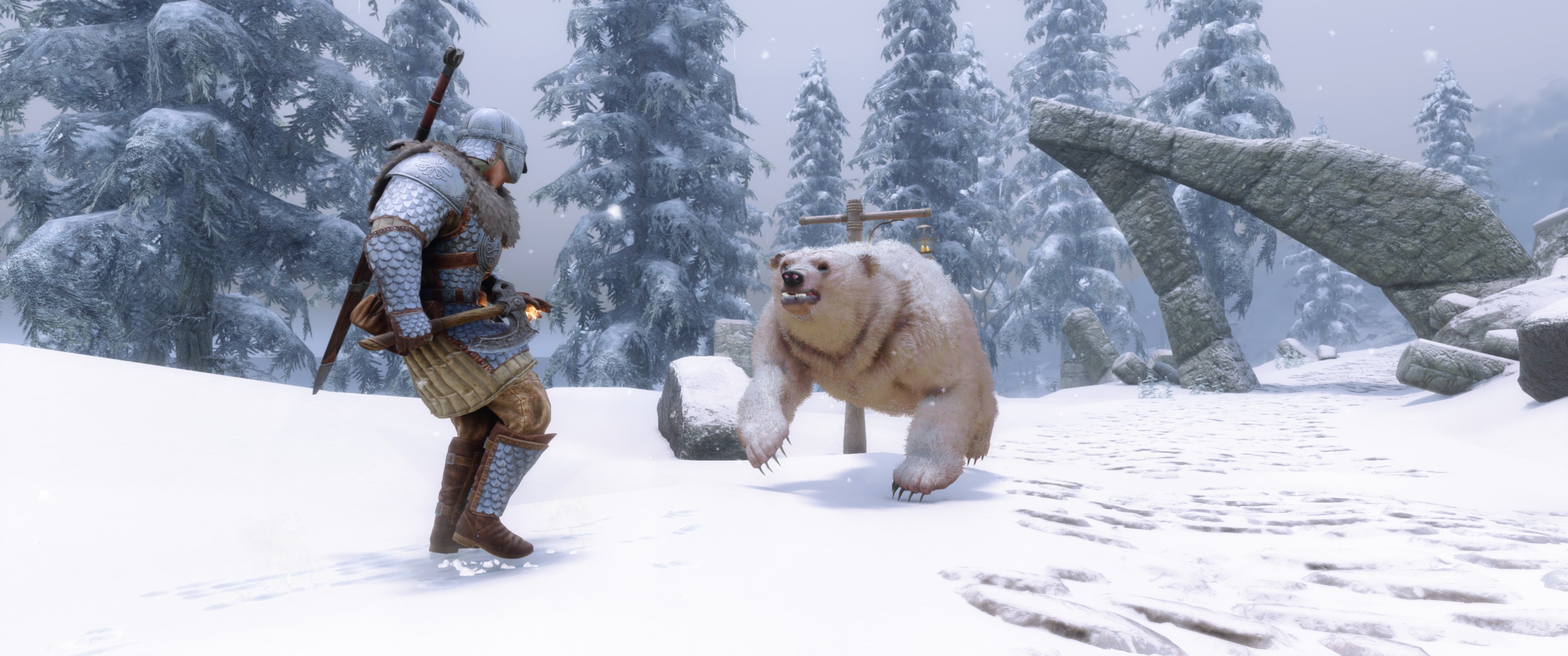 Это визуальный пересмотр медведей Скайрима. Каждый тип медведя (бурый, снежный и пещерный медведь) теперь будет иметь свои особенности. Медведи крупнее и имеют реалистичный мех, использующий текстурирование оболочки - технику, используемую в современных играх, таких как RDR2. Охотничьи трофеи также были обновлены в соответствии с новыми моделями. Загрузочный экран бурого медведя также использует улучшенную модель для соответствия новым моделям медведей.