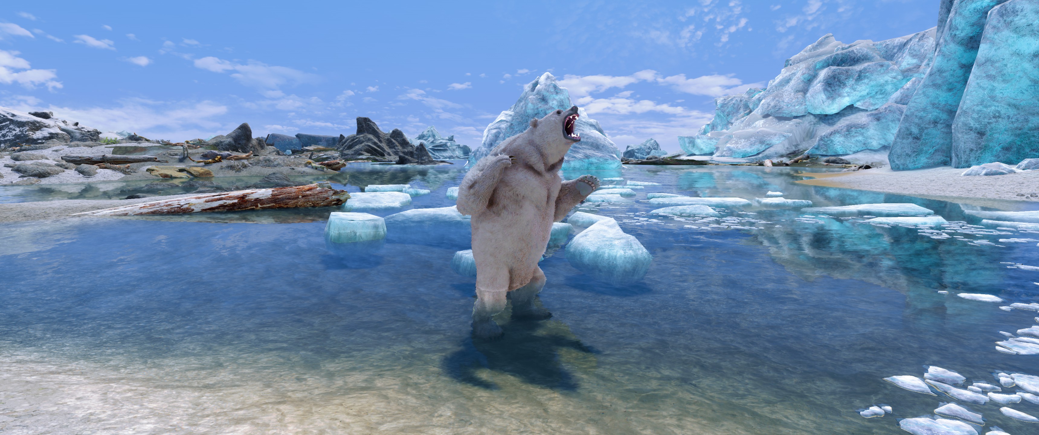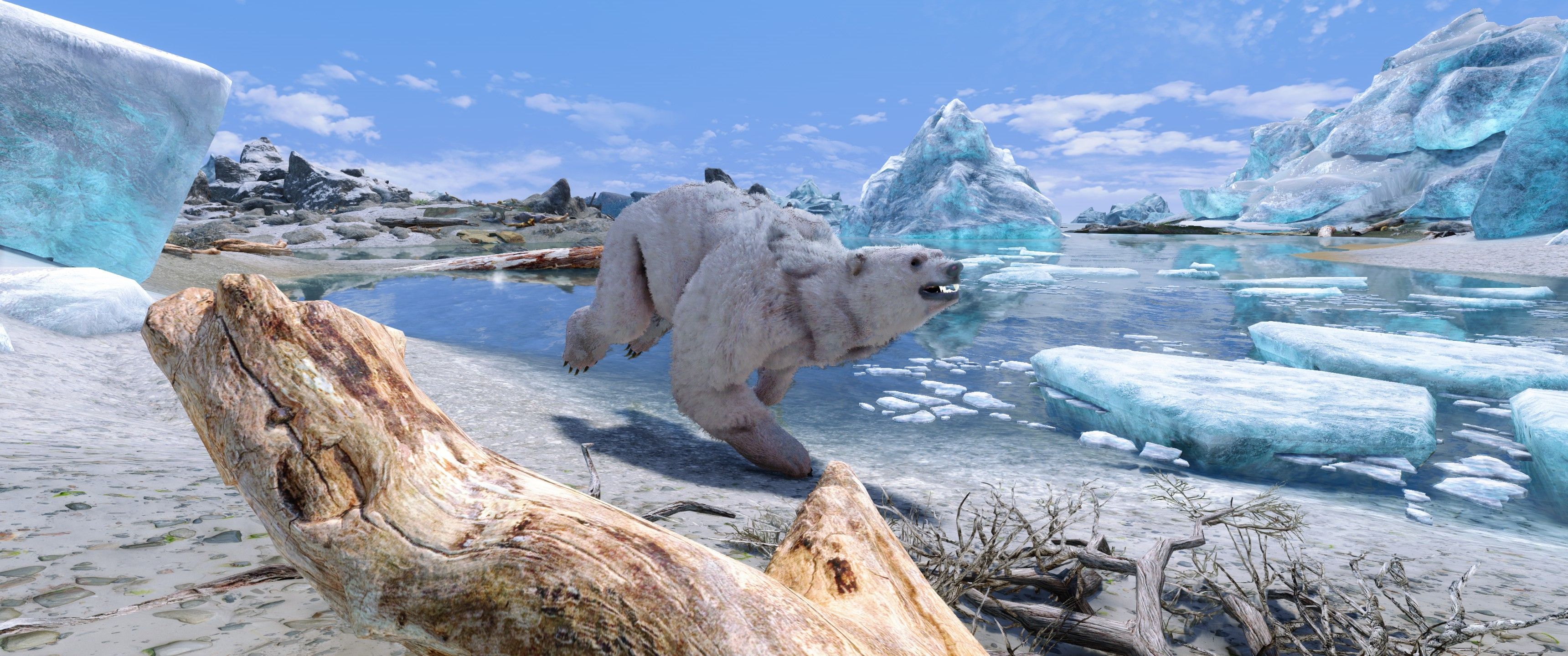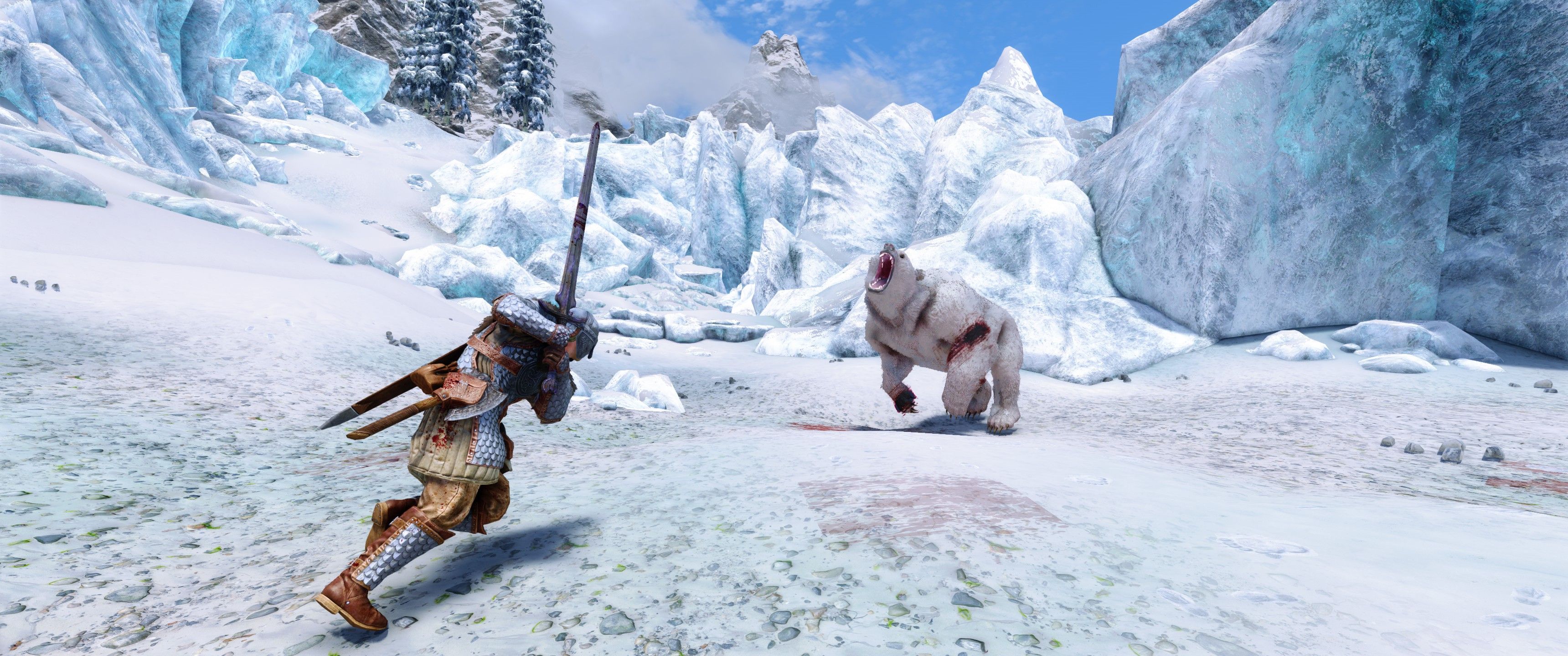 Снежные медведи живут в самых северных частях Скайрима. Их головы меньше и длиннее, чем у пещерных медведей. Основой в их рационе является рыба, но они не откажутся от заблудившегося пилигрима или глупого авантюриста. Будьте осторожны, бродя по берегам моря Призраков.