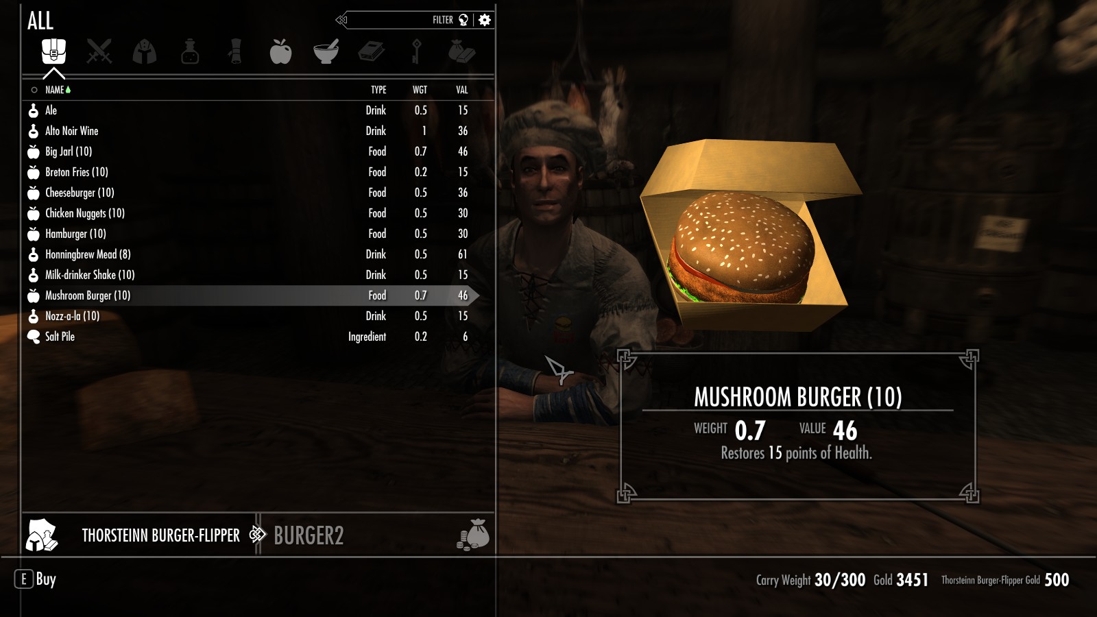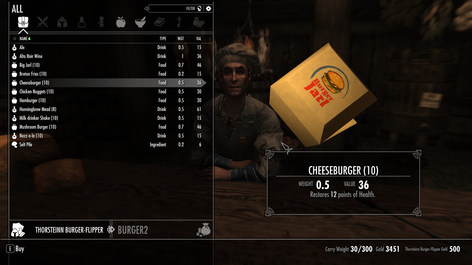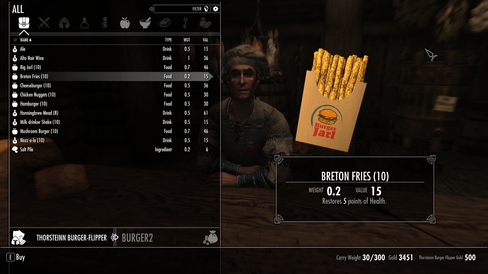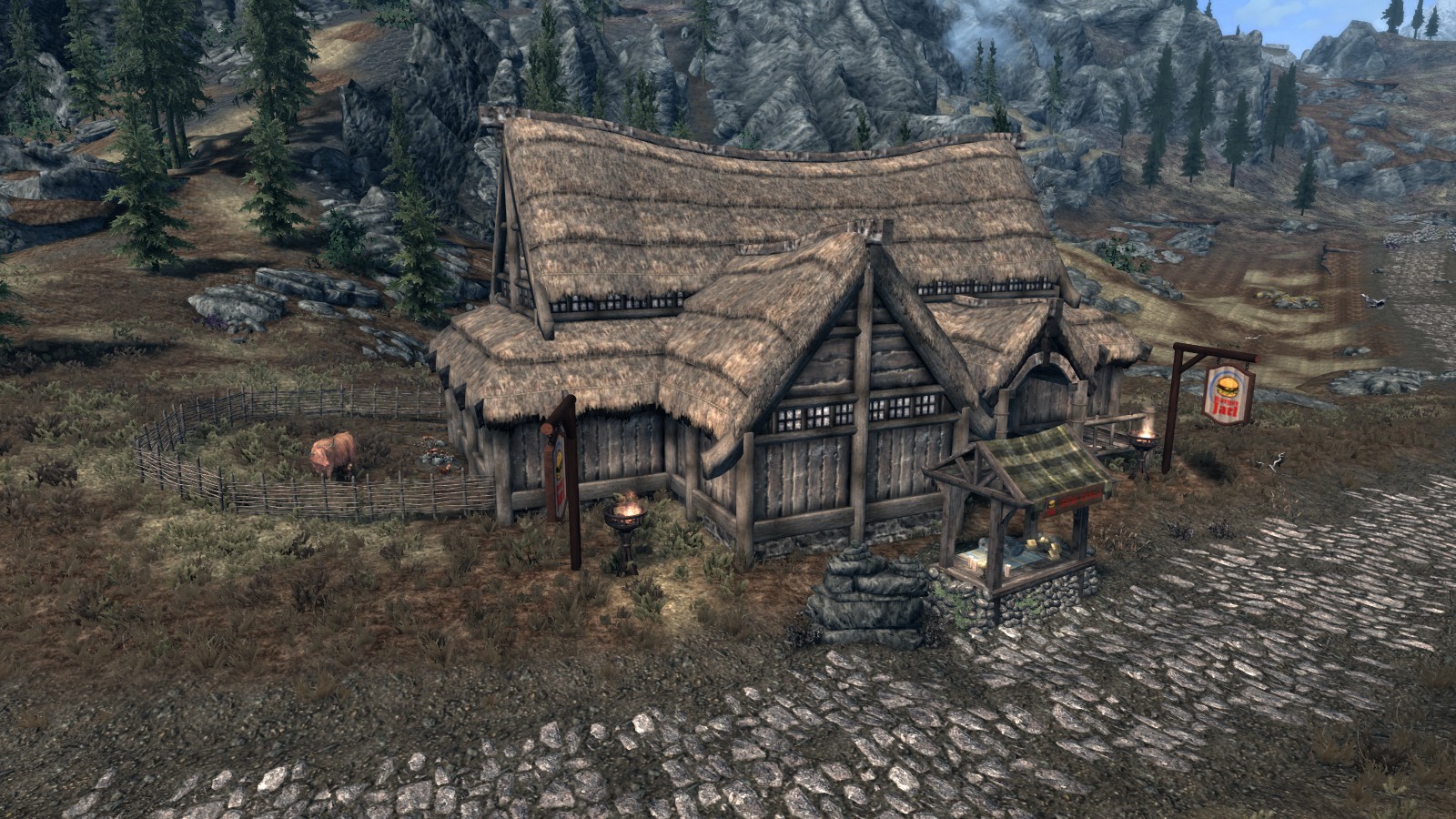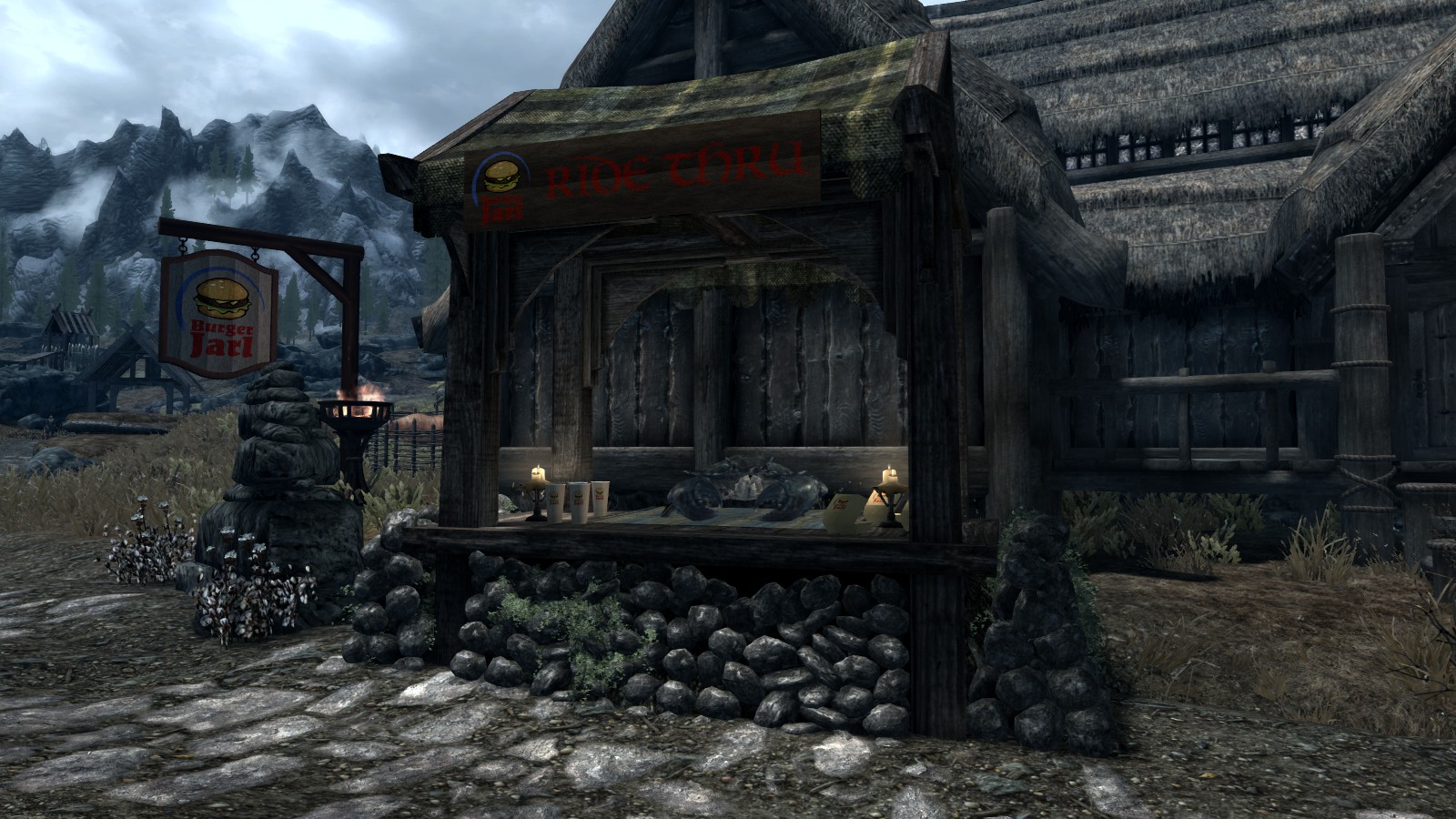 Между Вайтраном и Рорикстедом, недалеко от пещеры Сломанный Клык, открылся новый трактир и постоялый двор. Торстейнн Бургерный Простофиля предлагает вам блюда, никогда ранее не встречавшиеся в Скайриме. Подкрепитесь фастфудом между своими забегами по пещерам или оставайтесь на ночь, если владелец ресторана Карл Ярл вас не слишком вас пугает.