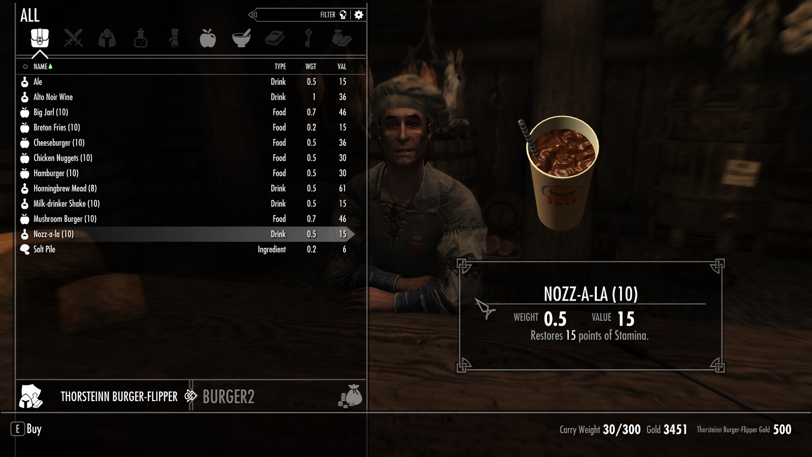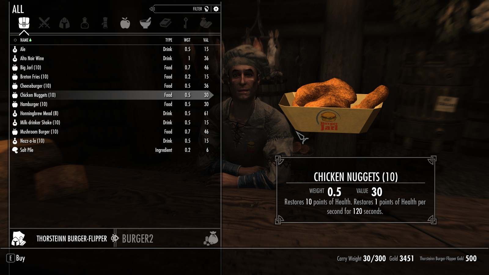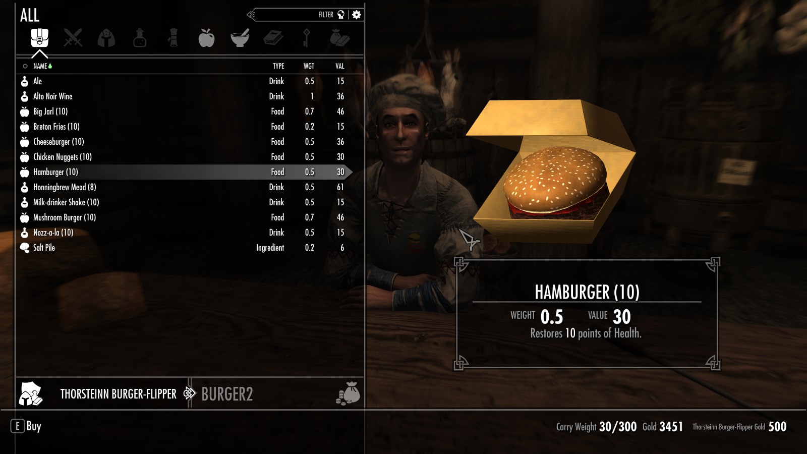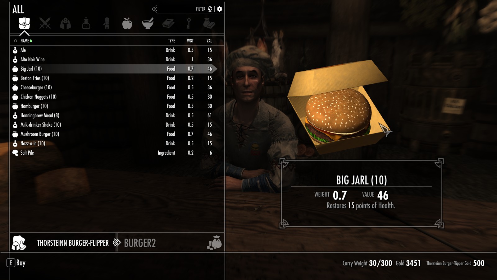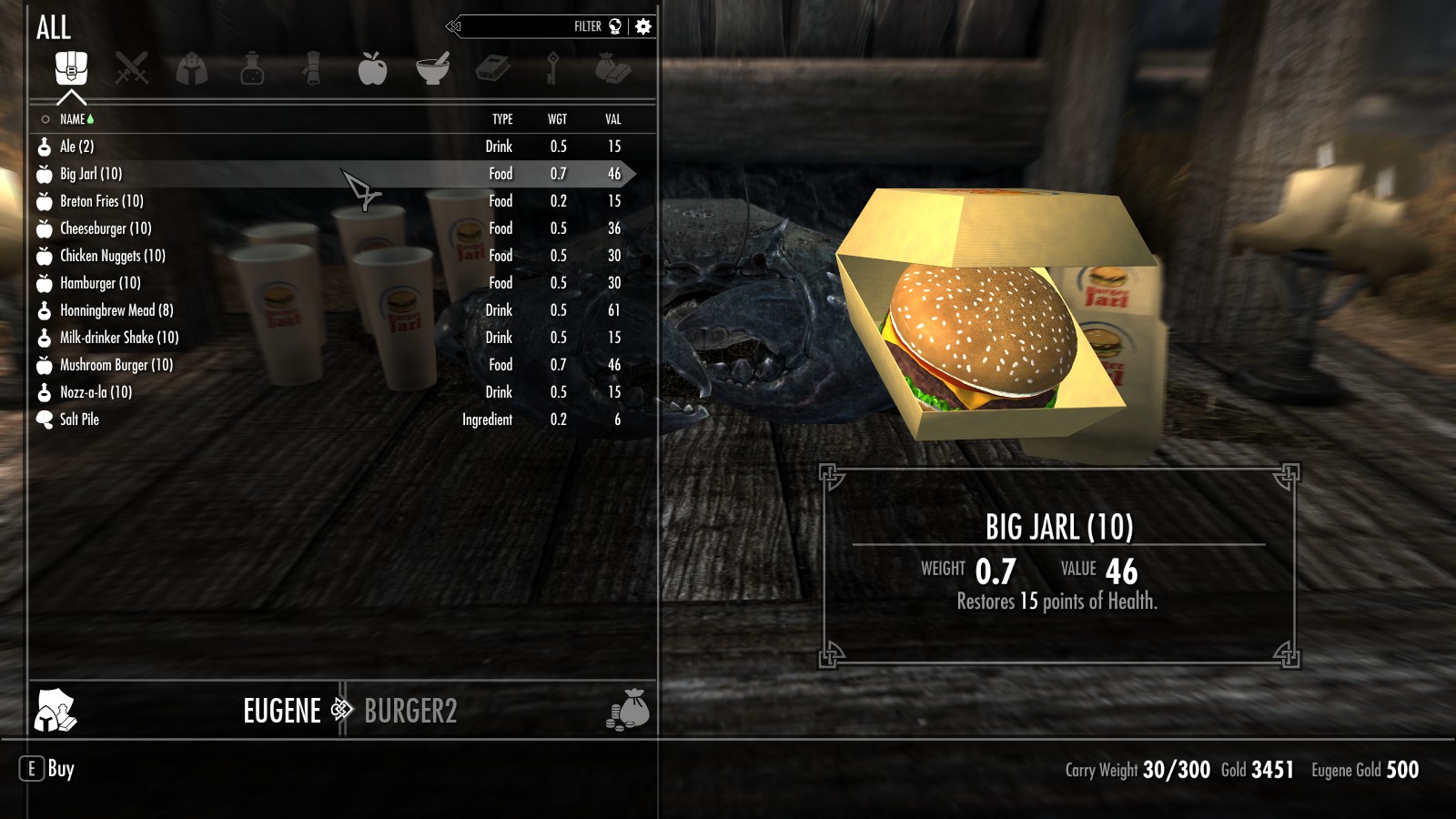 Между Вайтраном и Рорикстедом, недалеко от пещеры Сломанный Клык, открылся новый трактир и постоялый двор. Торстейнн Бургерный Простофиля предлагает вам блюда, никогда ранее не встречавшиеся в Скайриме. Подкрепитесь фастфудом между своими забегами по пещерам или оставайтесь на ночь, если владелец ресторана Карл Ярл вас не слишком вас пугает.