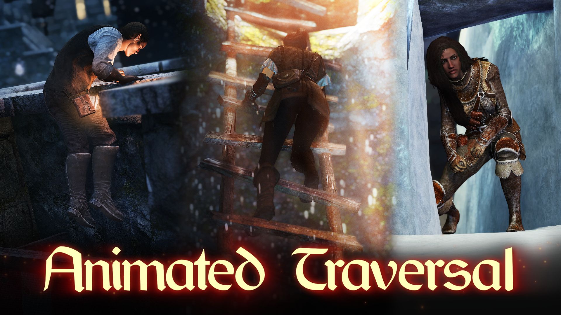 EVG Animated Traversal — это фреймворк, который добавляет новые анимации, позволяющие игроку взбираться на уступы, протискиваться сквозь узкие места, перепрыгивать через препятствия и делать многое другое на местах с подсказками.
