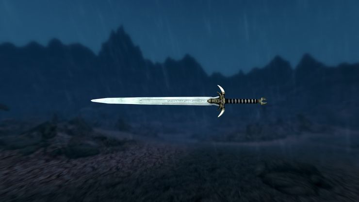 Найти меч из мода или создать нельзя. Для его получания, используйте QUI-SKSE