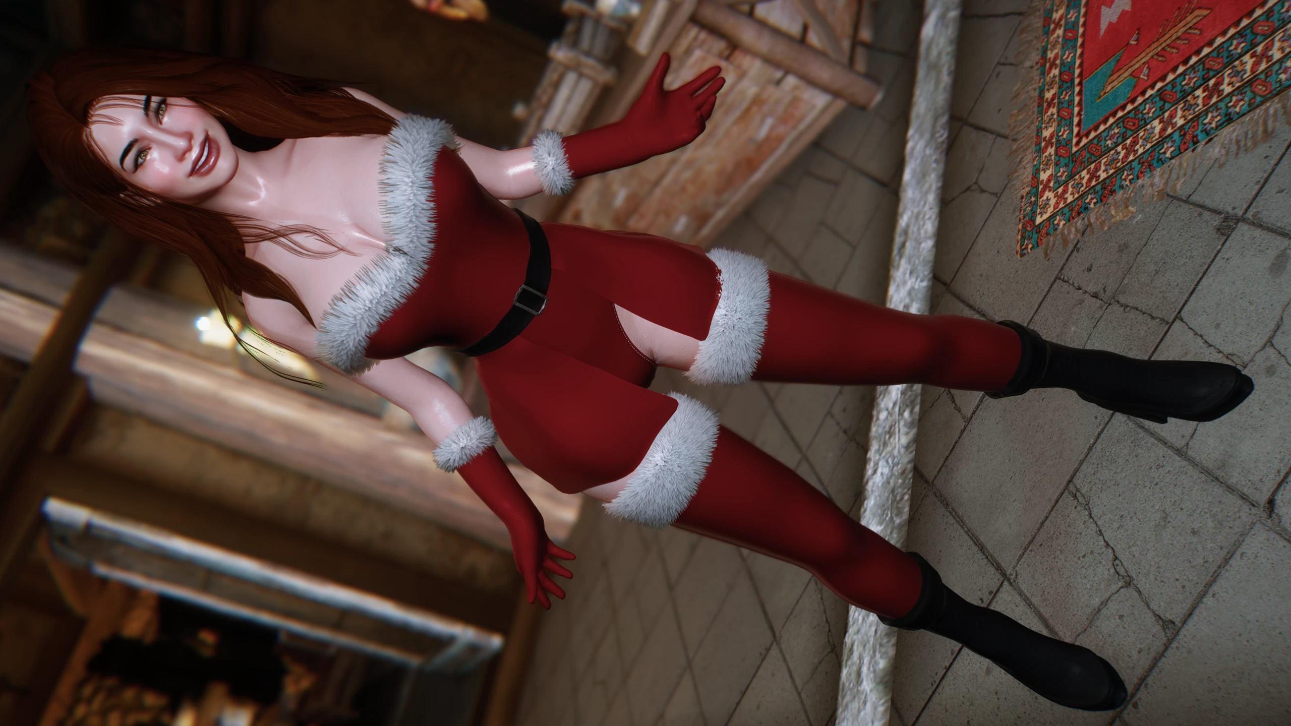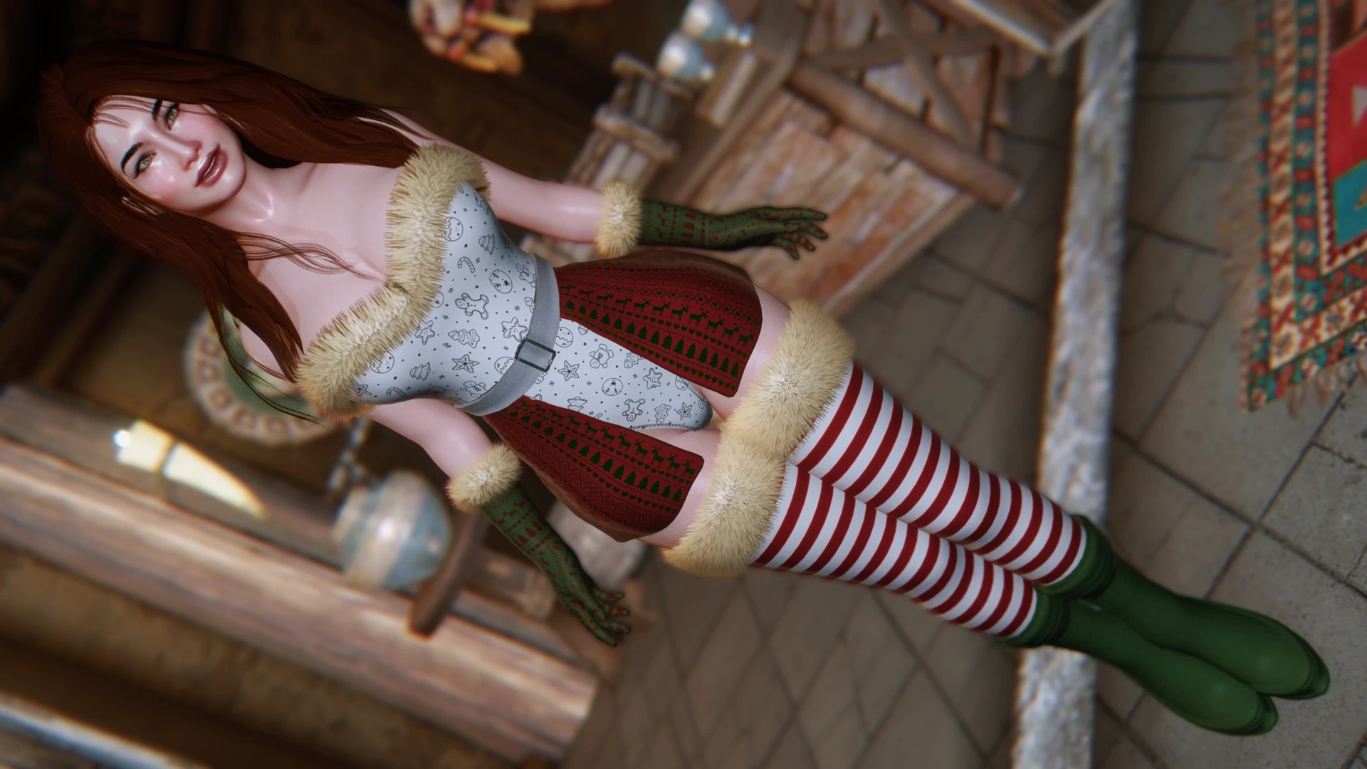 Представляю вам, еще одну готовую новогоднюю одежду для ЖГГ. Мод состоит из: основного наряда, перчаток, ботинок с носками, юбки (SMP) и меха для костюма, ботинок и носков, в обычном или металлическом исполнении. Создал ESL. Если одежда будет невидимой, просто создайте ее в бодислайде.