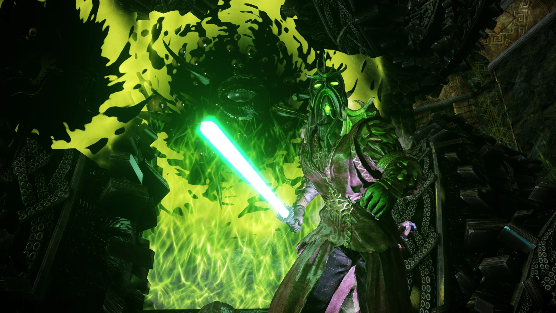 Перевод на русский язык мода DAC0DA от Vicn, который хронологически идёт первым перед троицей Дозорный-Гленморил-Унслад. Но это неточно, потому что Нумидиум залогинился в Скайрим, и само время сошло с ума.