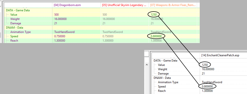 2) По поводу порядка загрузки: плагин "EnchantCleaner.esp" должен располагаться после всех модов, которые изменяют или добавляют зачарованное оружие.