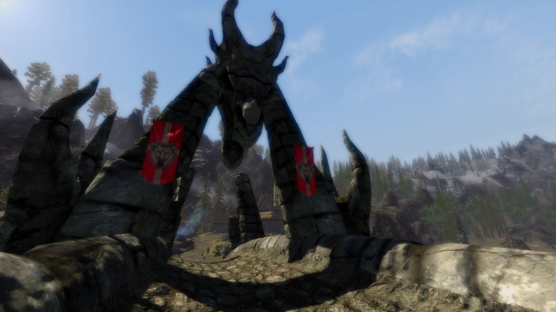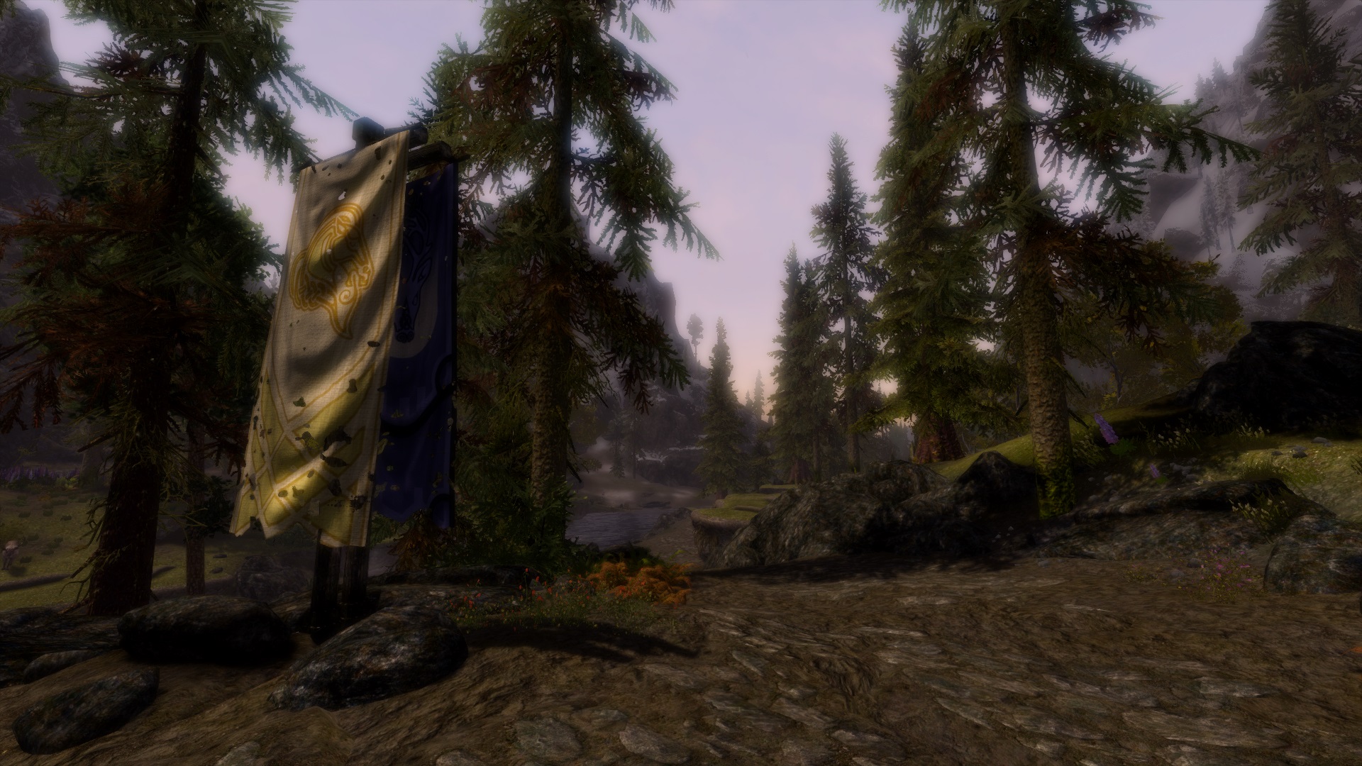 Мод добавляет пограничные стяги, отмечающие границы между холдами Скайрима. Узнать холд вы сможете по внешнему виду стяга, а также по названию, высвечивающемуся при наведении прицела на стяг.