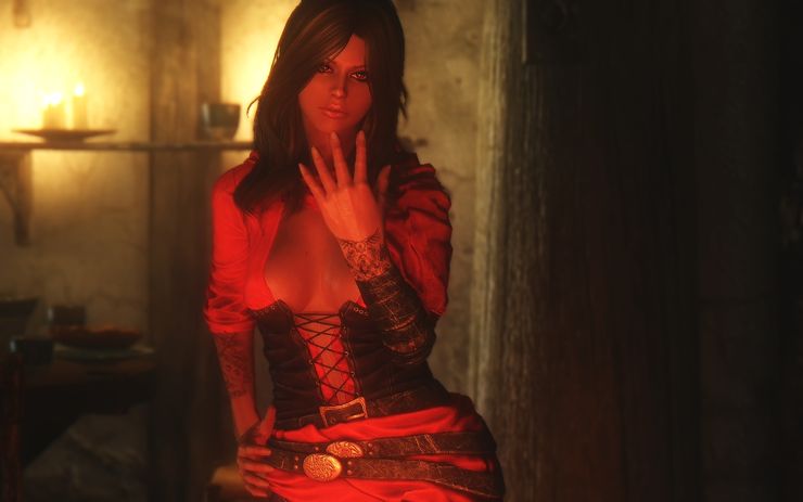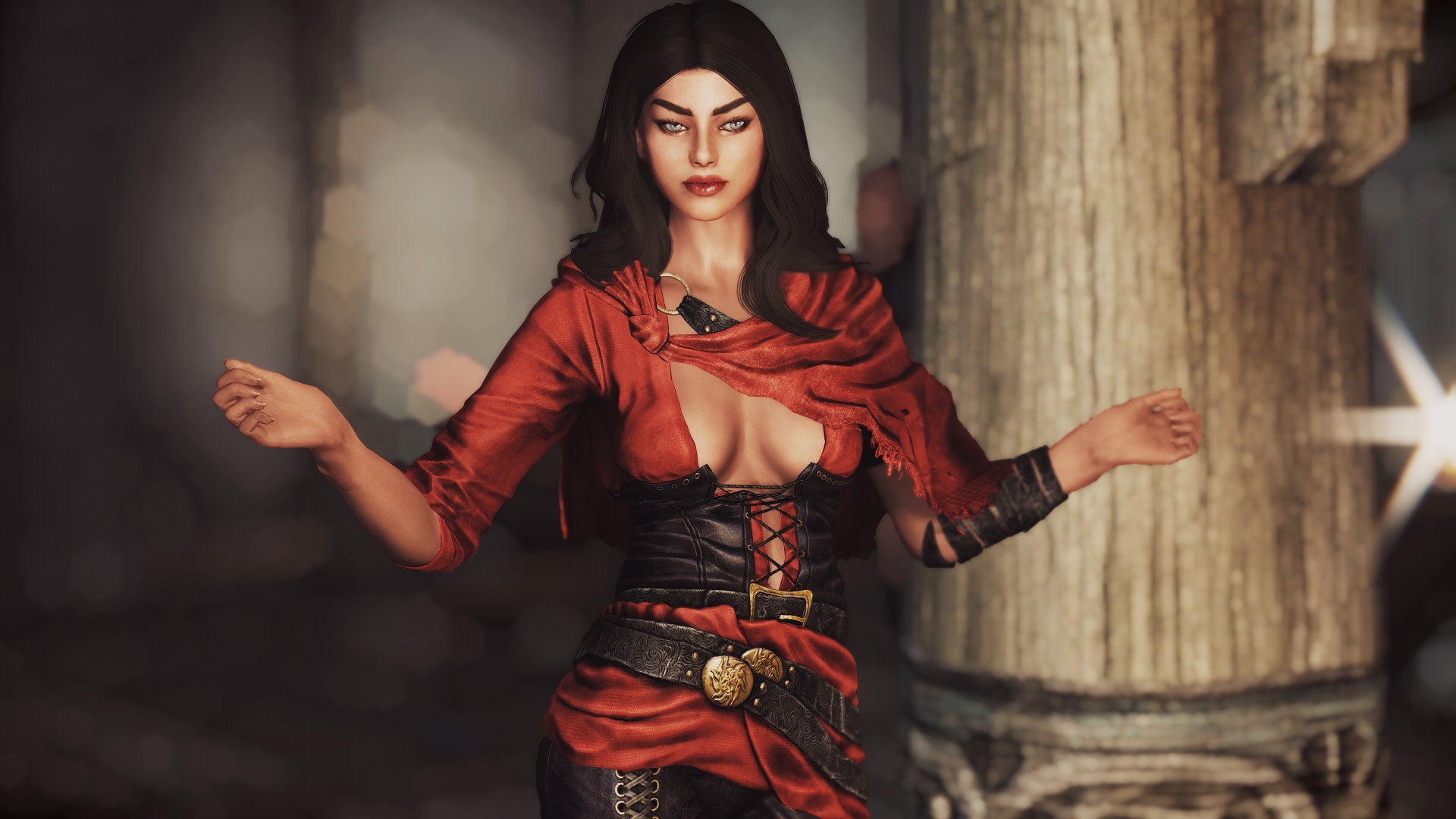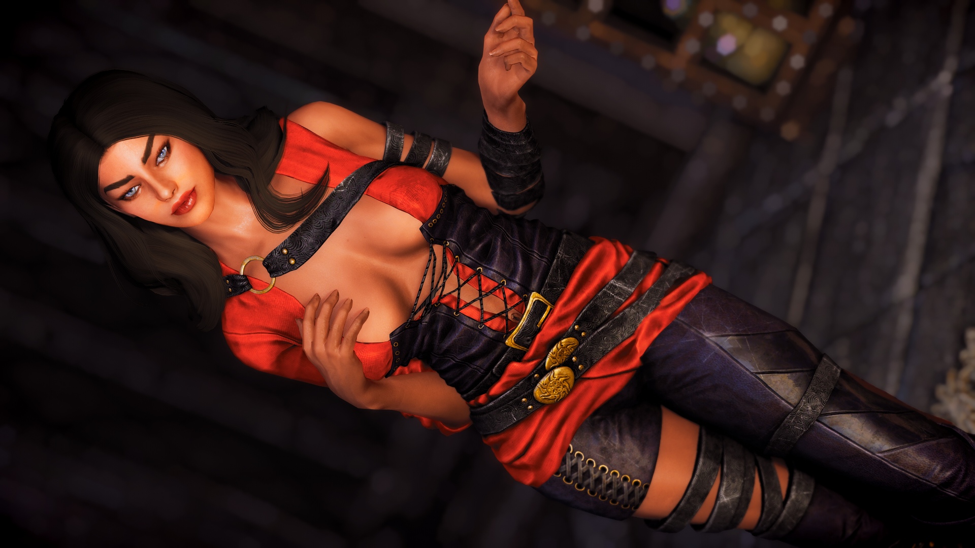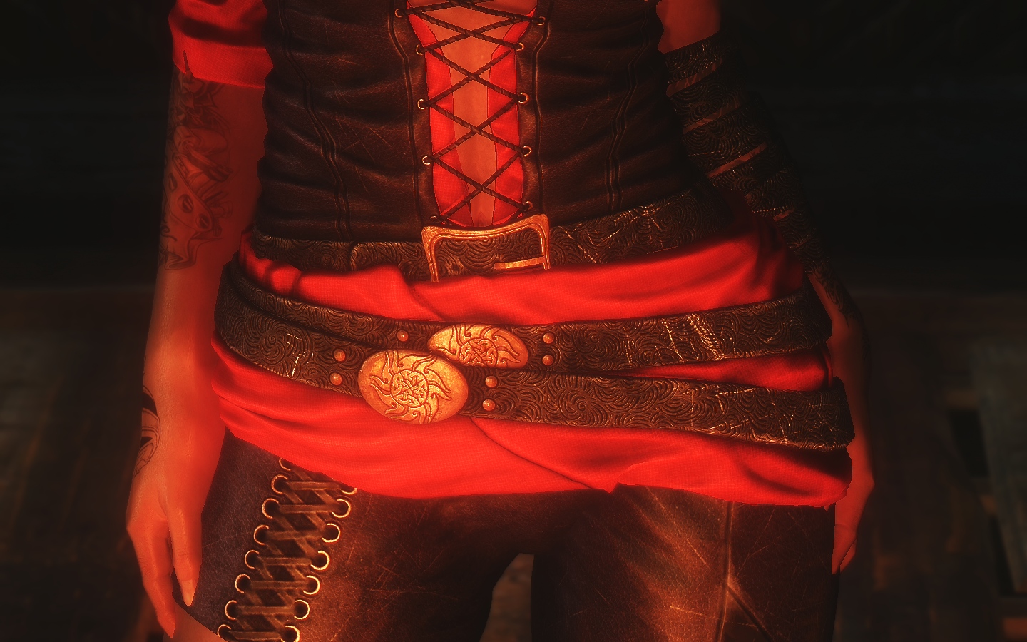 Scarlet Dawn Armor (доспехи "Алый рассвет") - качественный сет женской брони/одежды с текстурами в HD качестве и поддержкой "физики". Есть пресеты для BodySlide (только для CBBE версии). Одежду можно изготовить в кузнице, в разделе "Кожаное". Можно улучшить и зачаровать. Сет состоит из брони, сапог, платка, бандажа и относится к лёгкой броне.