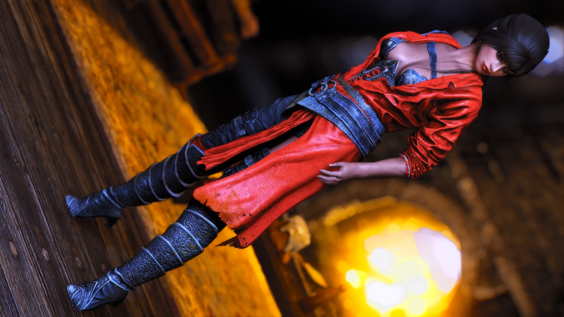 Crimson Twilight Armor (доспехи "Багровые сумерки") - качественный сет женской брони/одежды с текстурами в HD качестве. Одежду можно изготовить в кузнице, в разделе "Эбонитовое". Можно улучшить и зачаровать. Параметры брони немного слабее, чем у обычной эбонитовой, и стоит она немного дороже. Для изготовления брони необходим перк "Эбонитовые доспехи". Сет состоит из брони, сапог, перчатки, накидки и относится к тяжёлой броне. Есть варианты для тел UNP и CBBE.