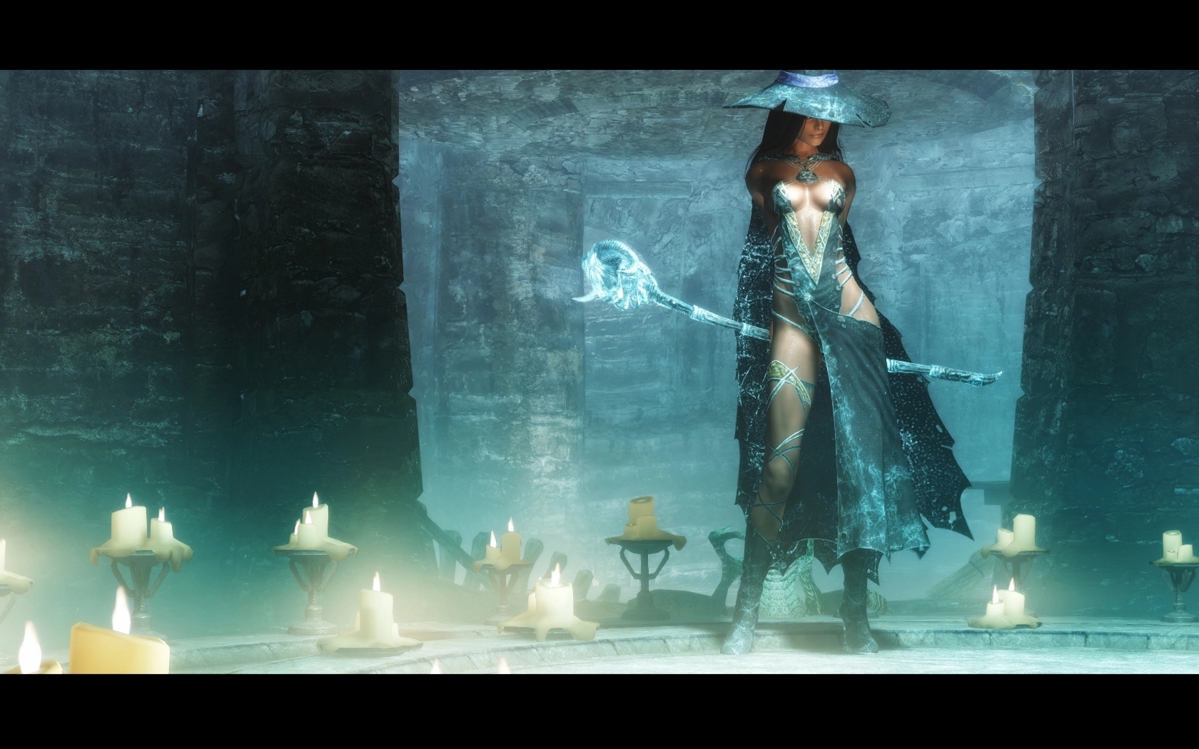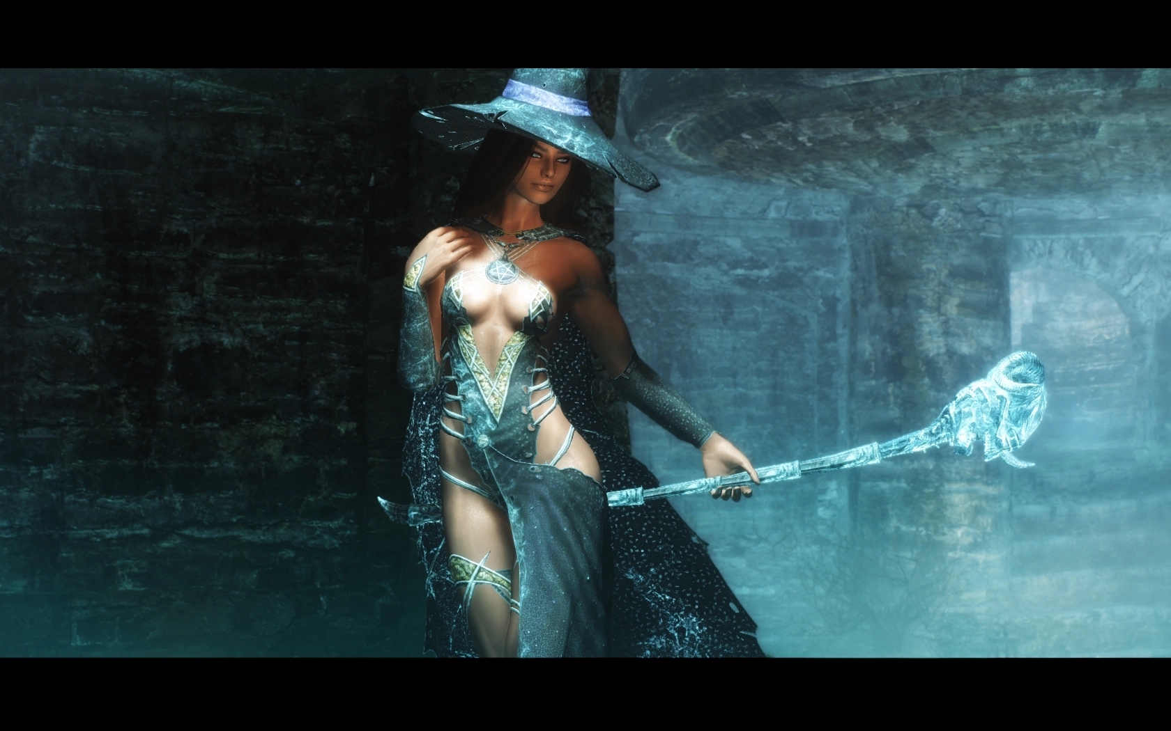 Мод добавляет в Skyrim эльфийскую женскую броню c физикой одежды (только в Skyrim SE), а также посох с заклинанием Ледяная буря.