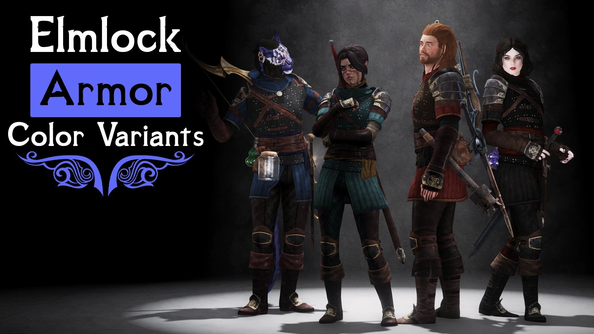 Основной esp заменён на вариант от Xtudo, который содержит несколько вариантов расцветки брони. Также в архив с модом включено дополнение Elmlock Armor - Color Variants, которое добавляет esp файл с ещё большим количеством новых расцветок брони (только для Skyrim SE).