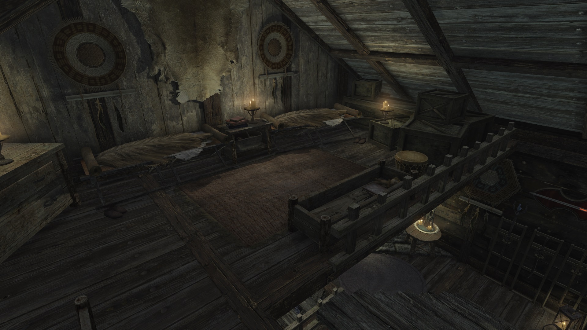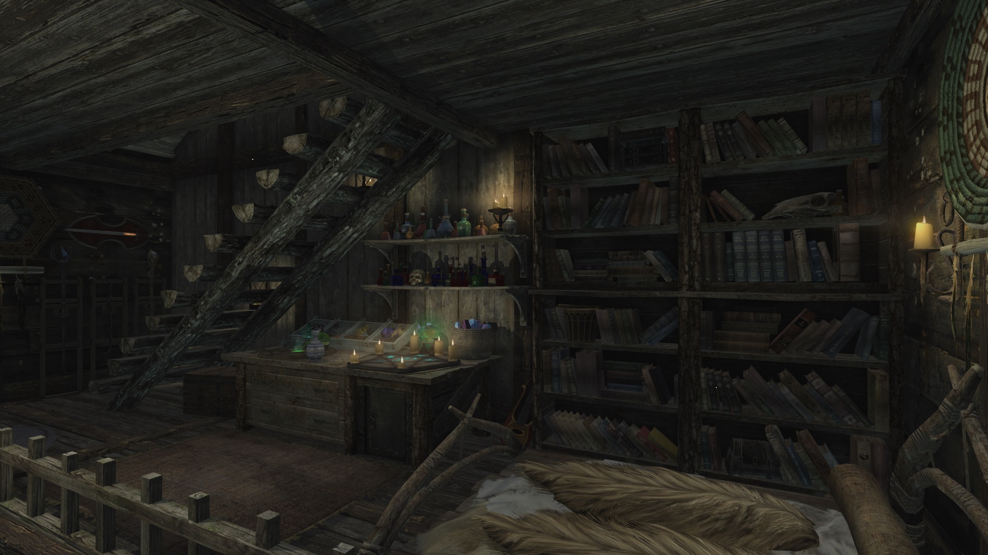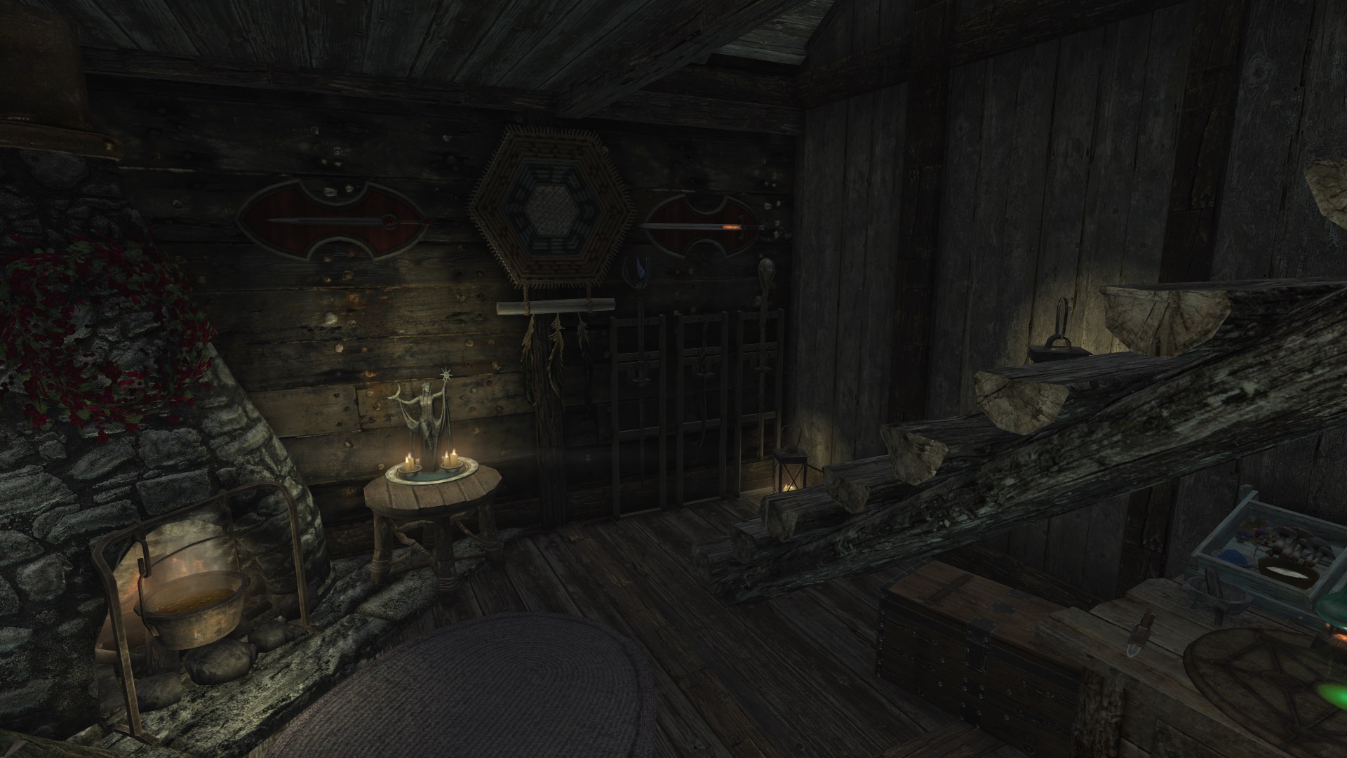 Добавляет в игру маленький скромный домик в Квартале серых города Виндхельм. Включает в себя алхимическую лабораторию, пентаграмму душ, печь и котелок, множество мест для хранения различных предметов, шкаф с 12 полками, куда можно поставить книги.