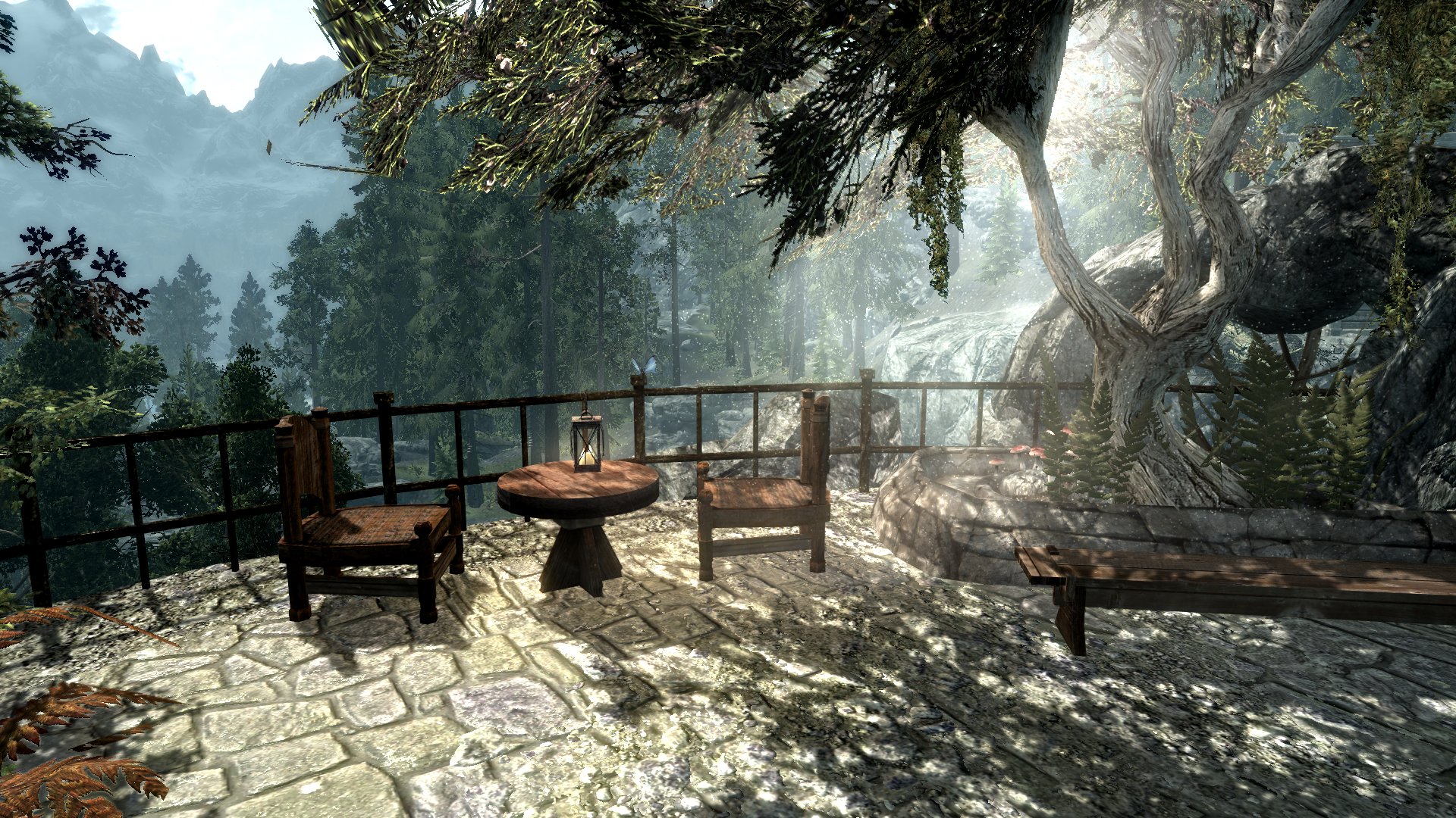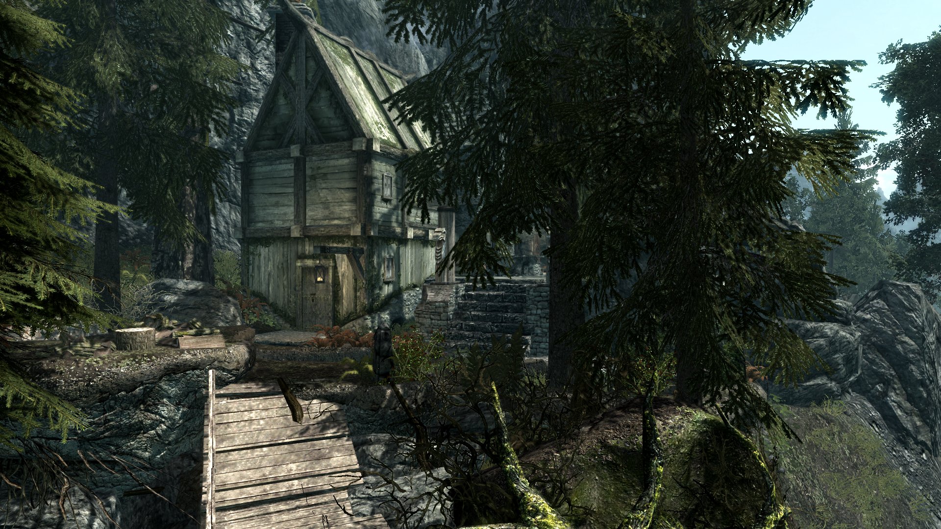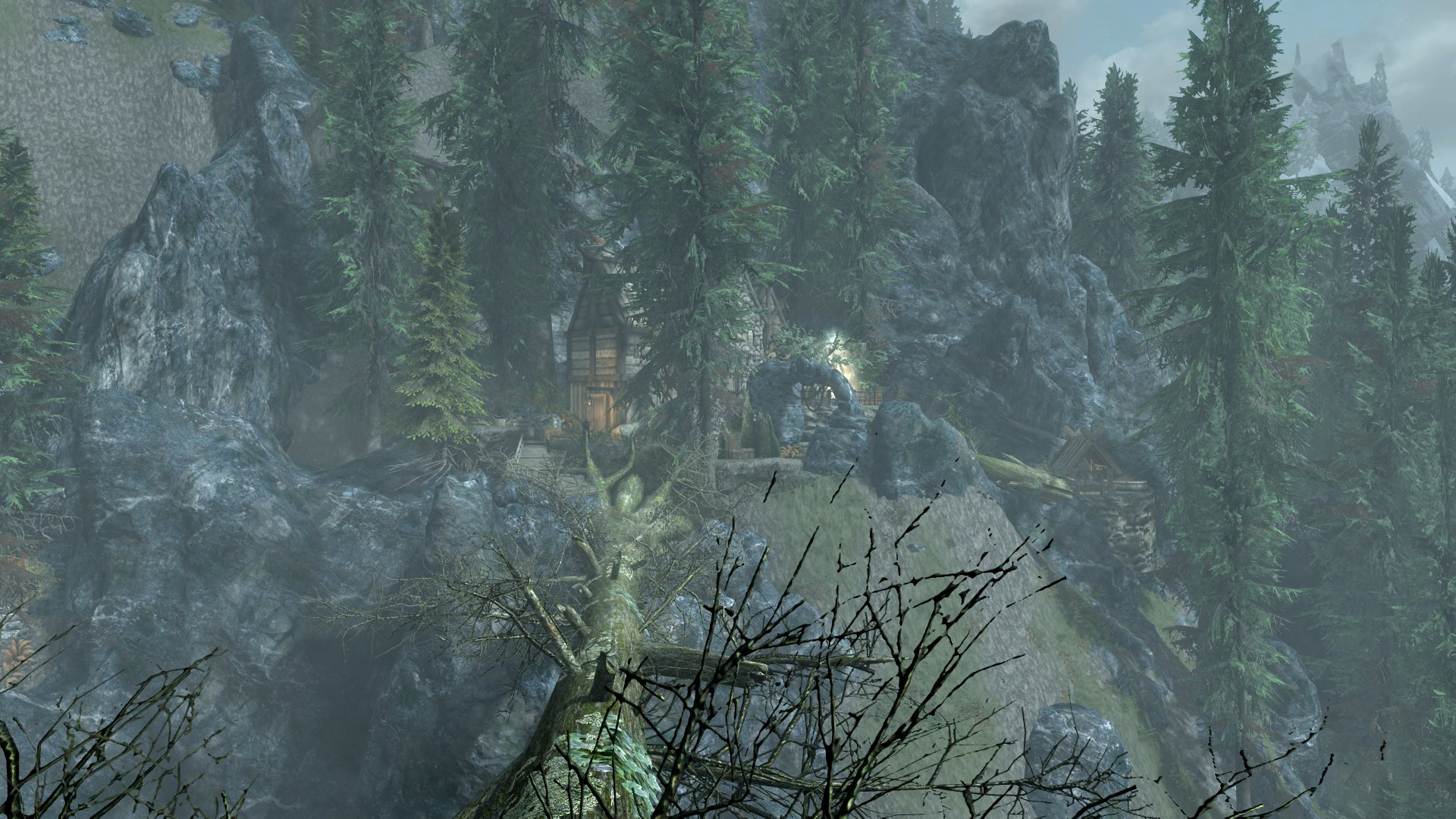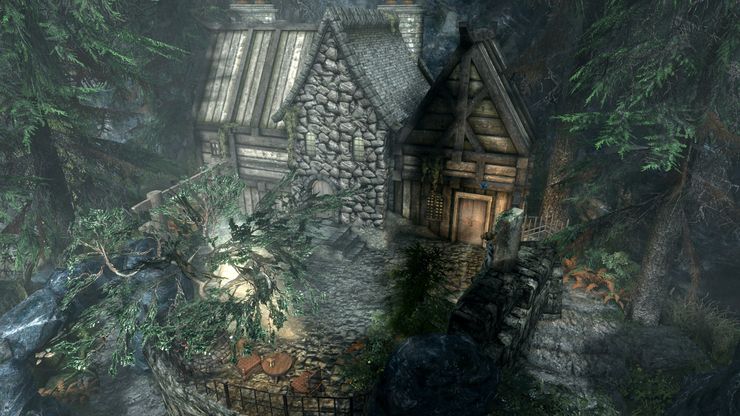 Порт мода Mist Top Retreat на Skyrim SE, выполненный мной с разрешения автора. Мод добавляет небольшой домик в живописном месте на восточном склоне Глотки Мира. В доме есть спальня, библиотека, гостиная, кухня и подвал. Через подвал можно попасть на пристань, расположенную внизу ущелья. Кузница и плавильня находятся на площадке рядом с домом. На другой стороне ущелья находится конюшня. Главное украшение дома - обзорная площадка, с которой можно любоваться восхитительным скайримским пейзажем.