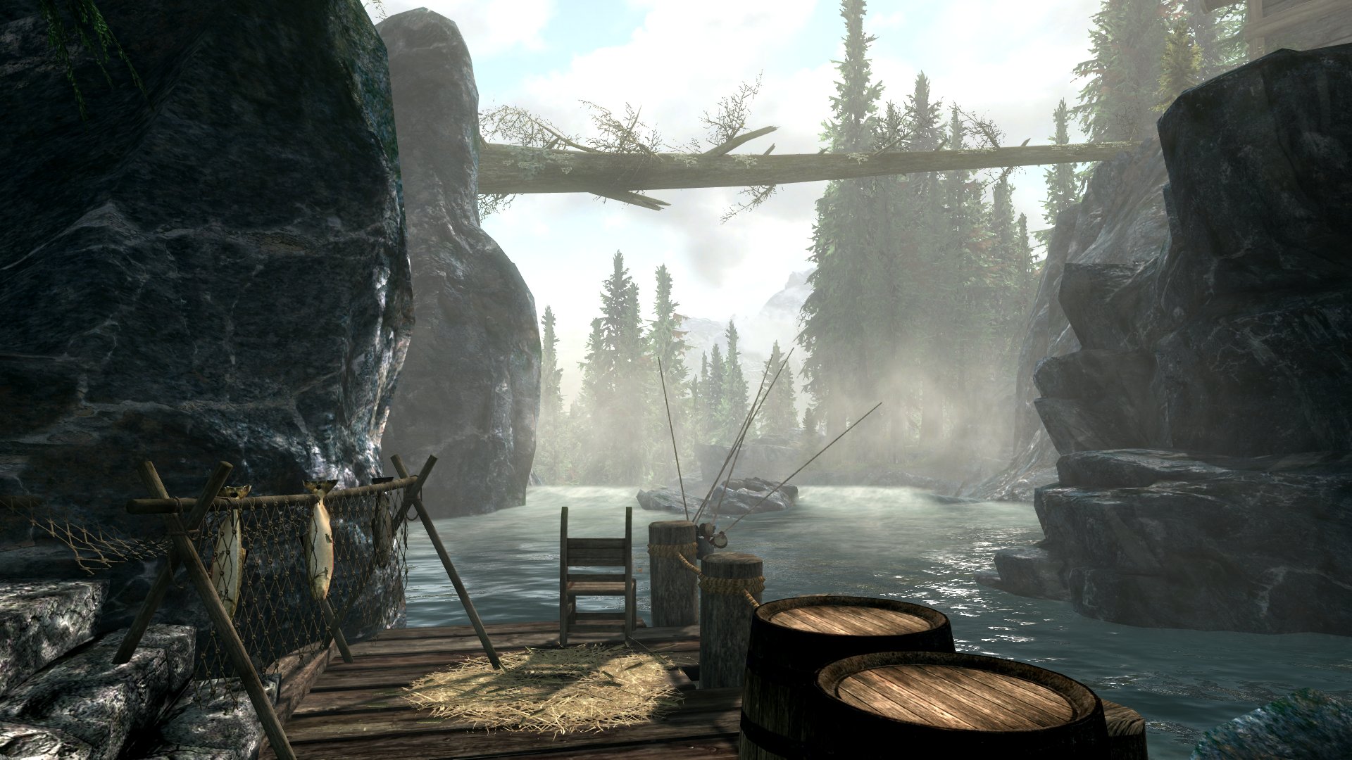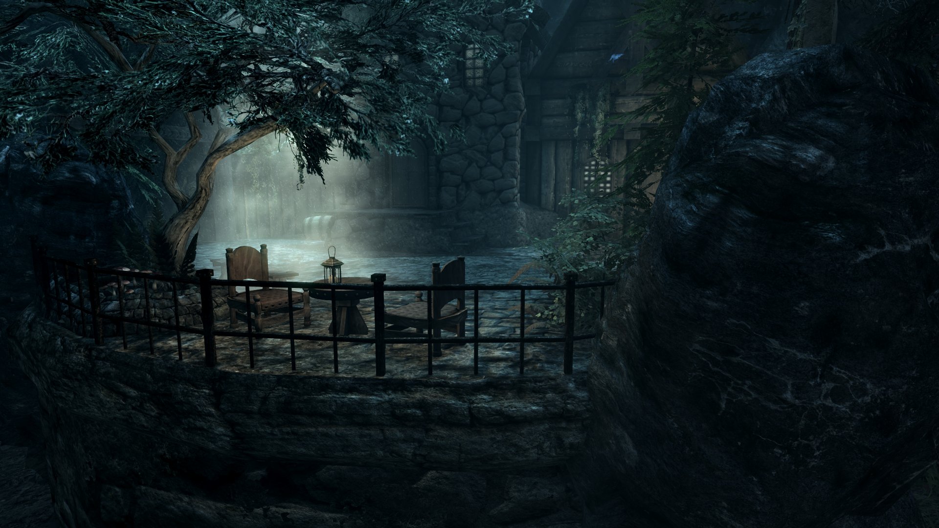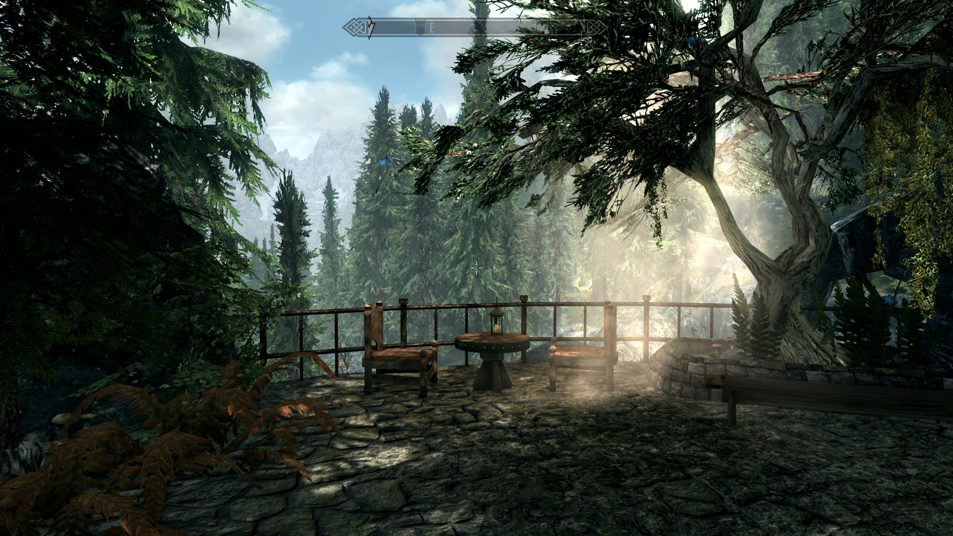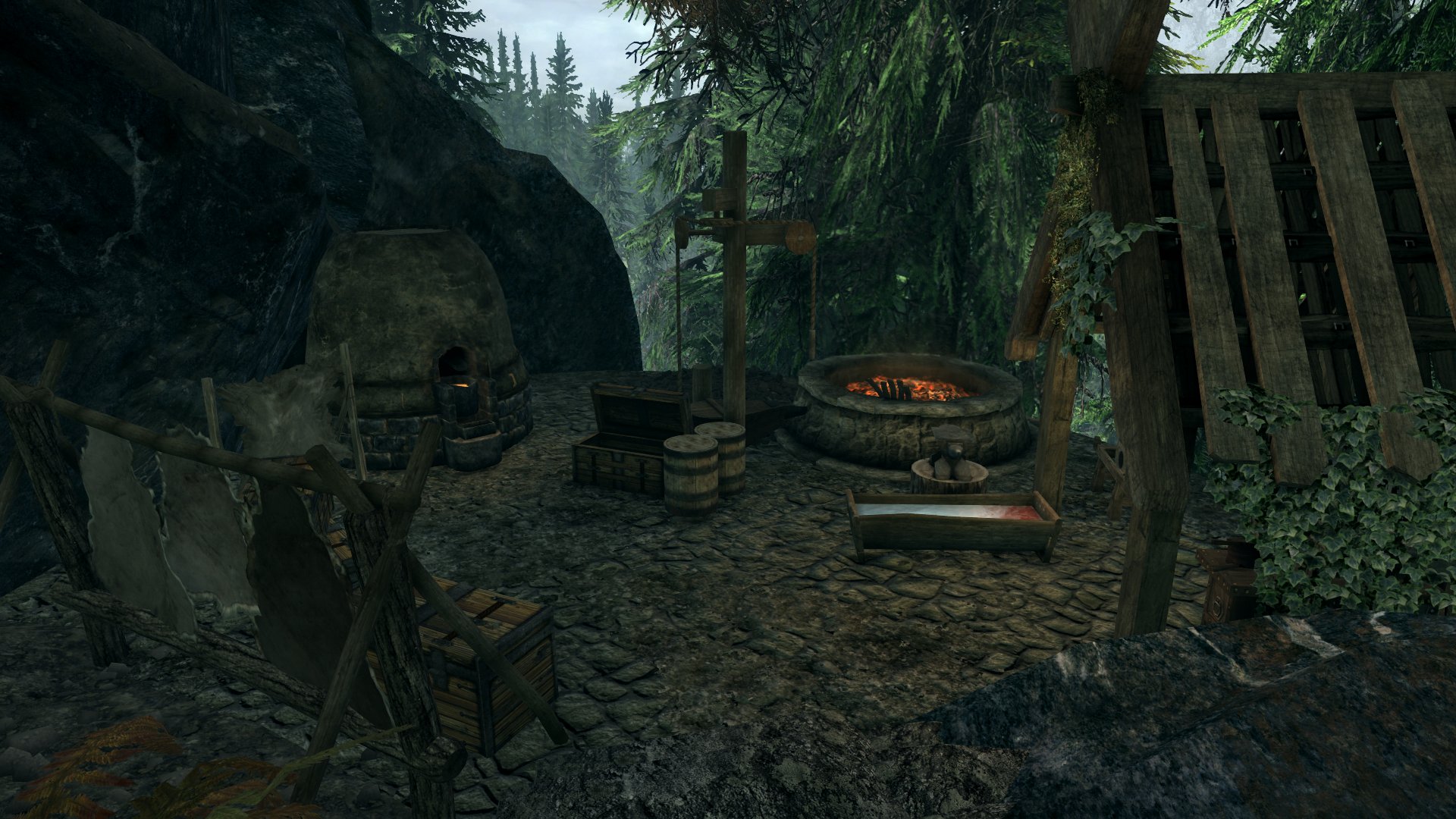 Порт мода Mist Top Retreat на Skyrim SE, выполненный мной с разрешения автора. Мод добавляет небольшой домик в живописном месте на восточном склоне Глотки Мира. В доме есть спальня, библиотека, гостиная, кухня и подвал. Через подвал можно попасть на пристань, расположенную внизу ущелья. Кузница и плавильня находятся на площадке рядом с домом. На другой стороне ущелья находится конюшня. Главное украшение дома - обзорная площадка, с которой можно любоваться восхитительным скайримским пейзажем.