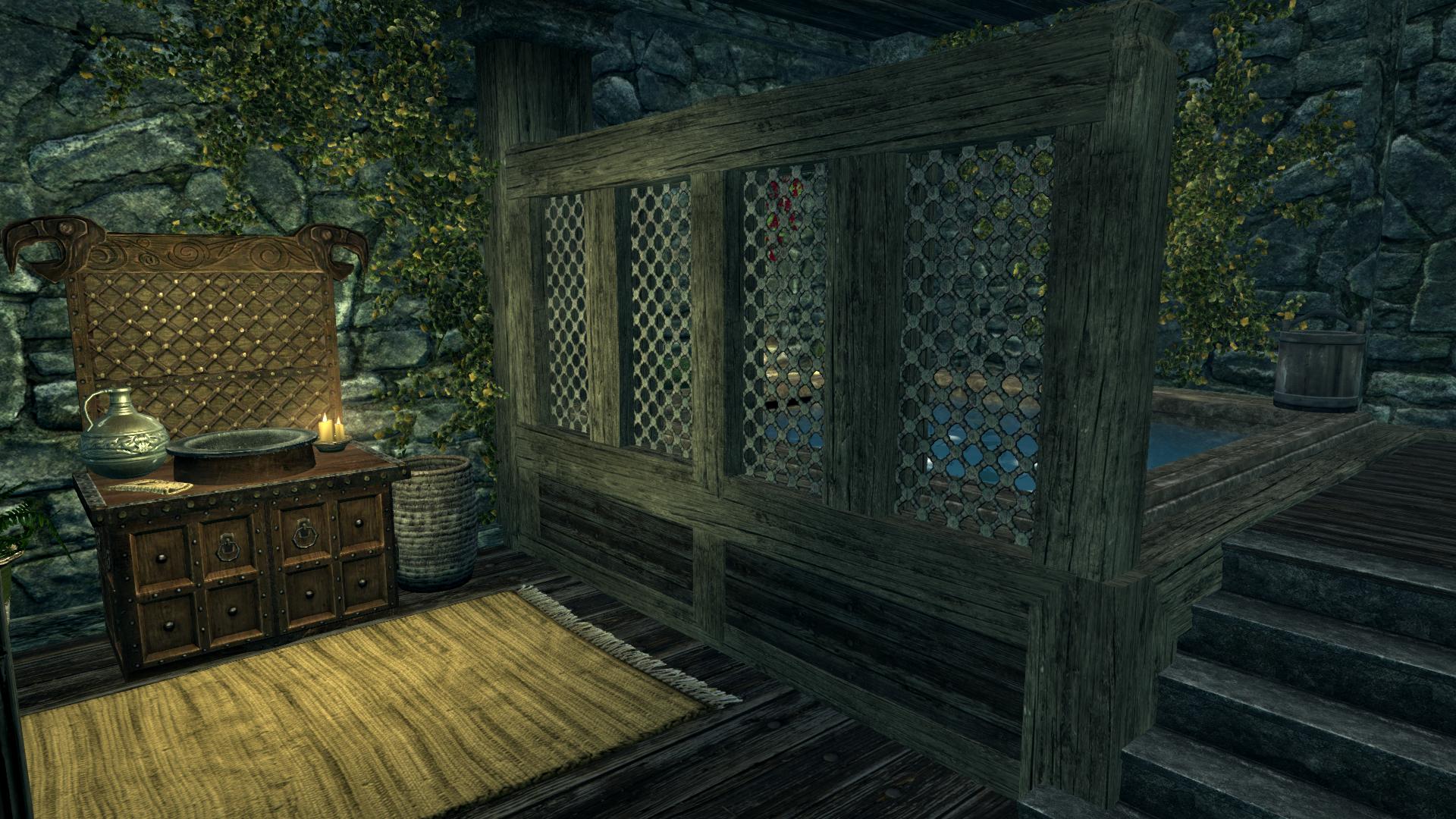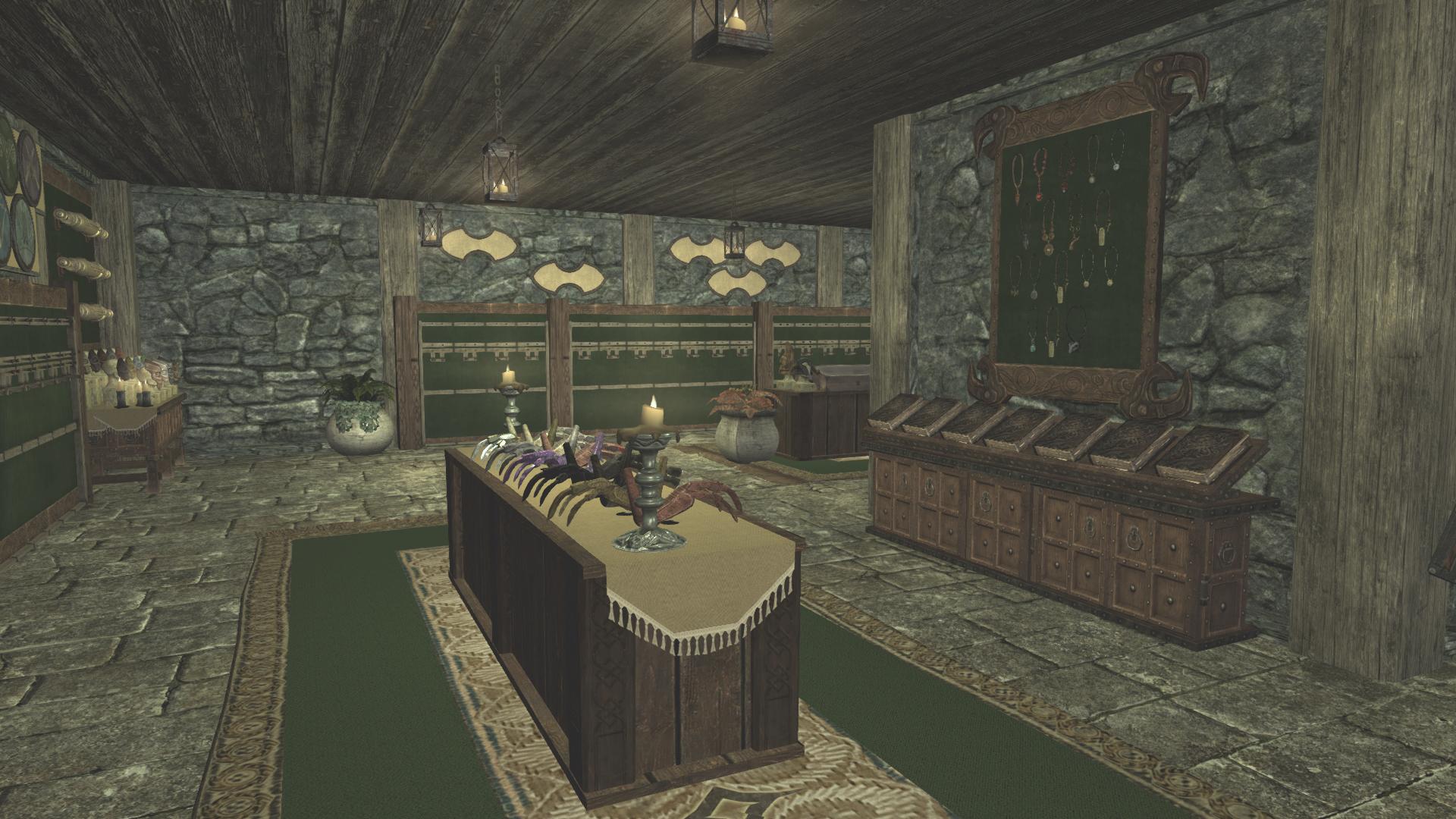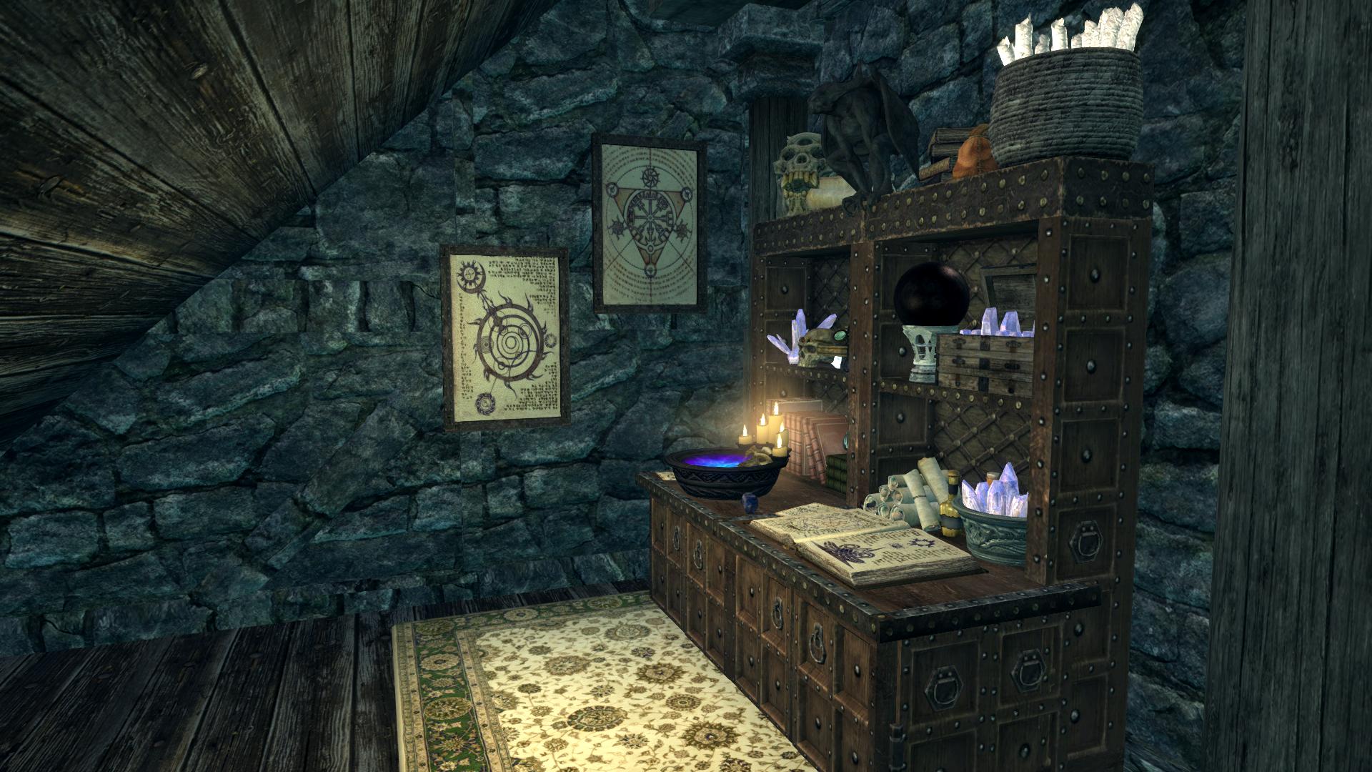 - Красиво оформленный уголок зачарователя с купелью снятия зачарования (можно снимать зачарование со всех зачарованных вами лично предметов, очень полезно для прокачки навыка).