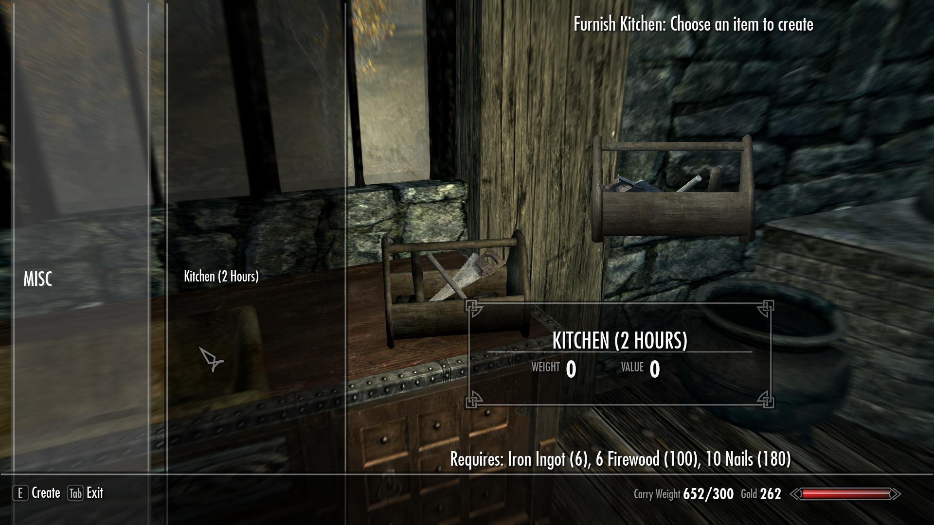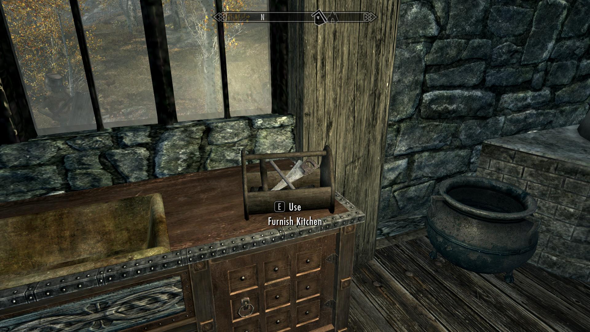 - Дом будет пустой, вам придётся заняться его обстановкой и опционально построить подвал, но не пугайтесь, это совсем не так замороченно, как в Hearthfire. Для тех, кто не хочет добывать материалы, автор предлагает читтерский вариант: нужно включить консолью режим tcl и пройти сквозь стену в ванной, там есть читтерский строительный сундук со всем необходимым.