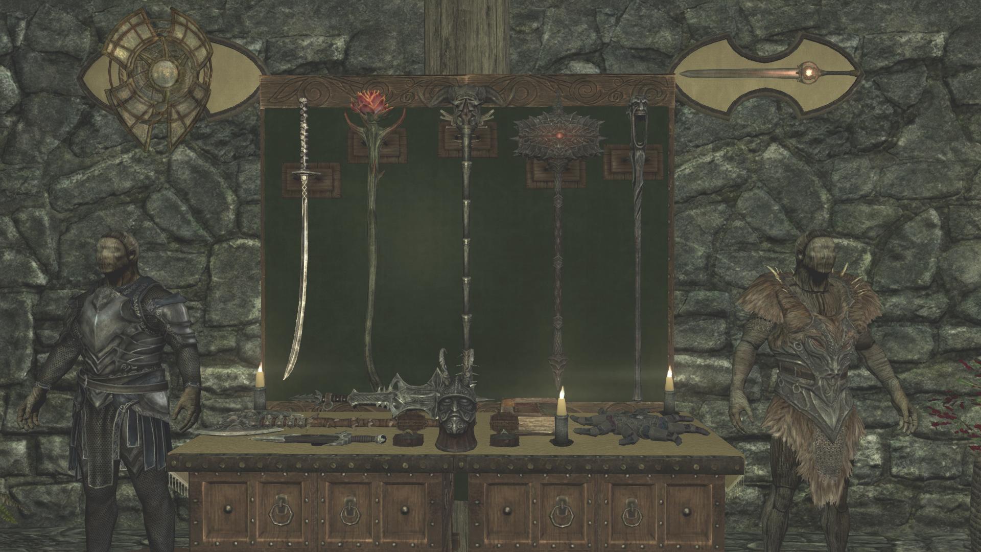 - В Музее на именные полки и витрины можно размещать квестовые предметы (которые нельзя обычным способом выложить из инвентаря). Предметы, которые по квесту нужно отдать за вознаграждение (например, по заказу Гильдии или кого-то ещё), можно оставить в музее и пойти сдать квест (!). Вы получите награду и квест будет закрыт, а предмет останется у вас в музее.