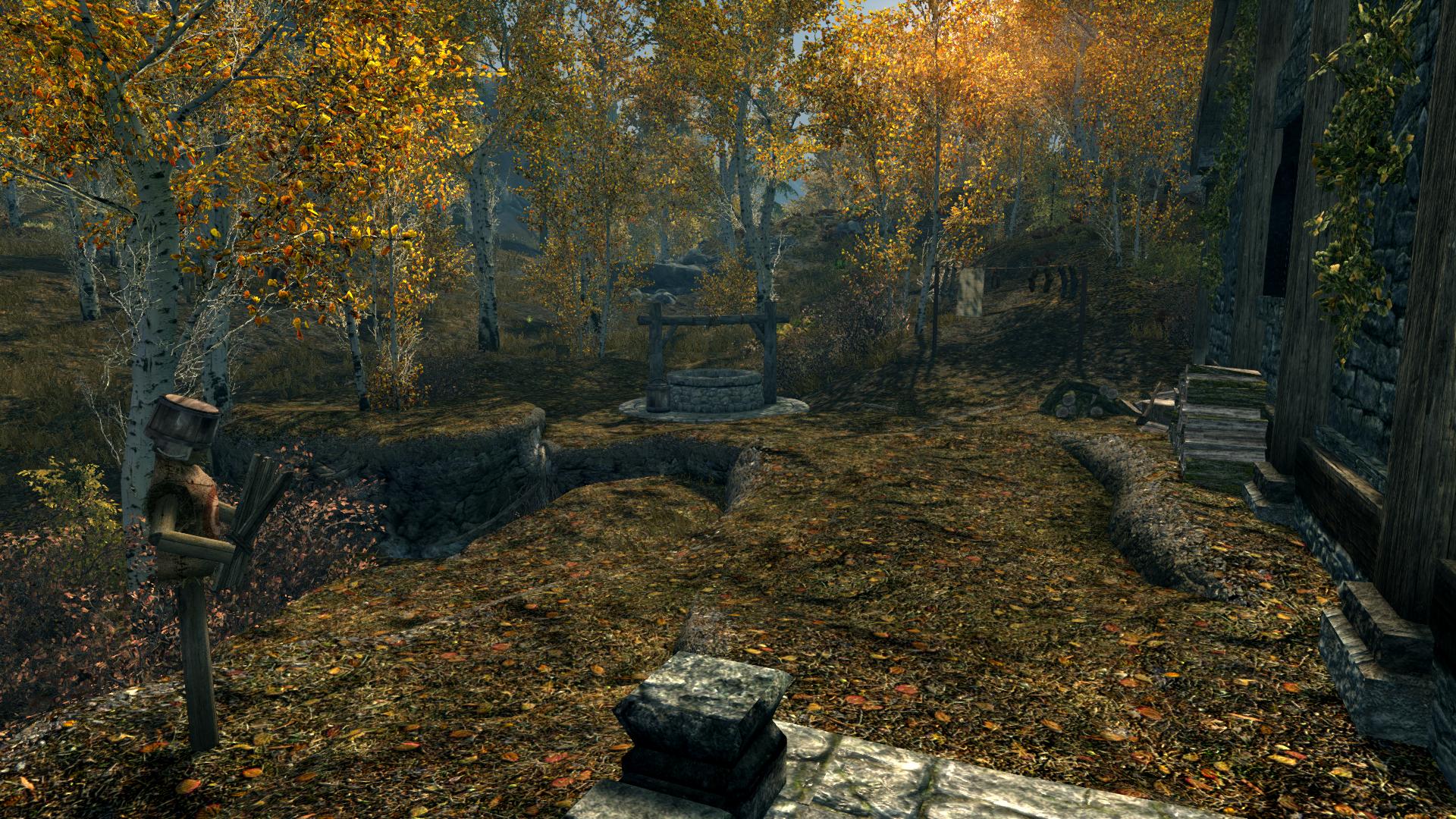 - Колодец (по ссылке на оригинал можно дополнительно скачать патч для естественных потребностей, что даст возможность набирать питьевую воду), колода для рубки дров, конюшня на одну лошадь.