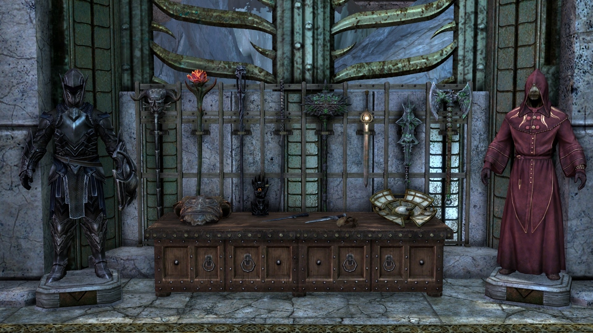 В выставочном зале (Зал Легенд) есть места для даэдрических артефактов, чёрных книг, древних свитков, манекены для уникальных доспехов и многое другое. Трофеи, добытые для гильдии воров, будут появляться в зале одновременно с их появлением в Цистерне. Места для некоторых артефактов отмечены специальными активаторами - маленькими чёрными камнями.