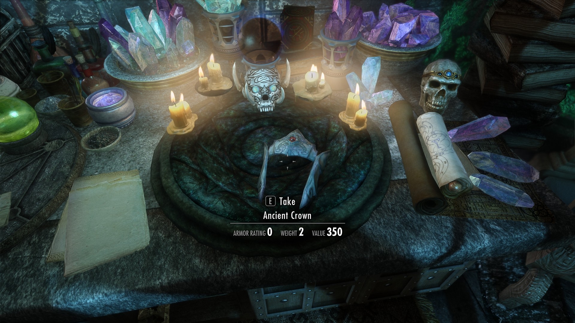 Чтобы попасть в выставочный зал необходимо надеть корону, которая находится на столе для зачарований. Она действует аналогично деревянной маске - только внутри дома.