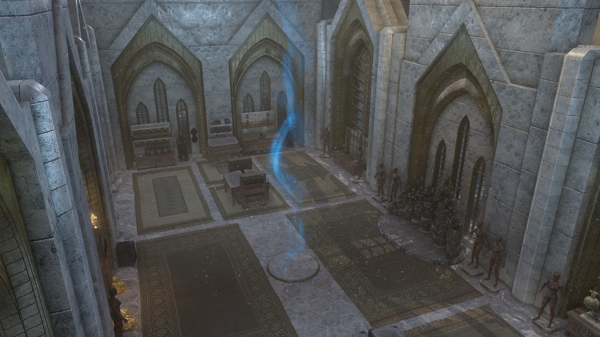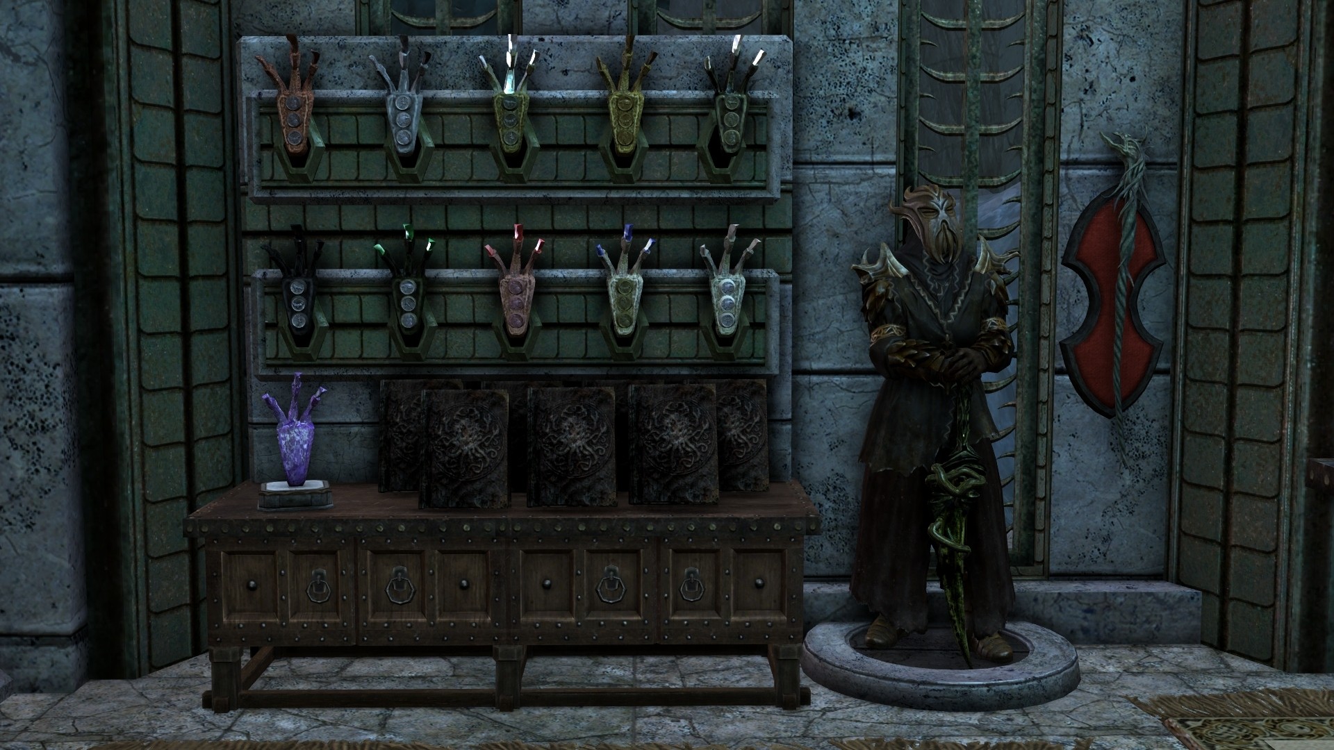 Мод добавляет в Skyrim SE магическую башню - дом среднего размера недалеко от Винтерхолда. Дом состоит из двух этажей, связанных порталами, подвала и секретного выставочного зала со стойками для уникальных предметов из игры и большим количеством манекенов, витрин и стоек для оружия.