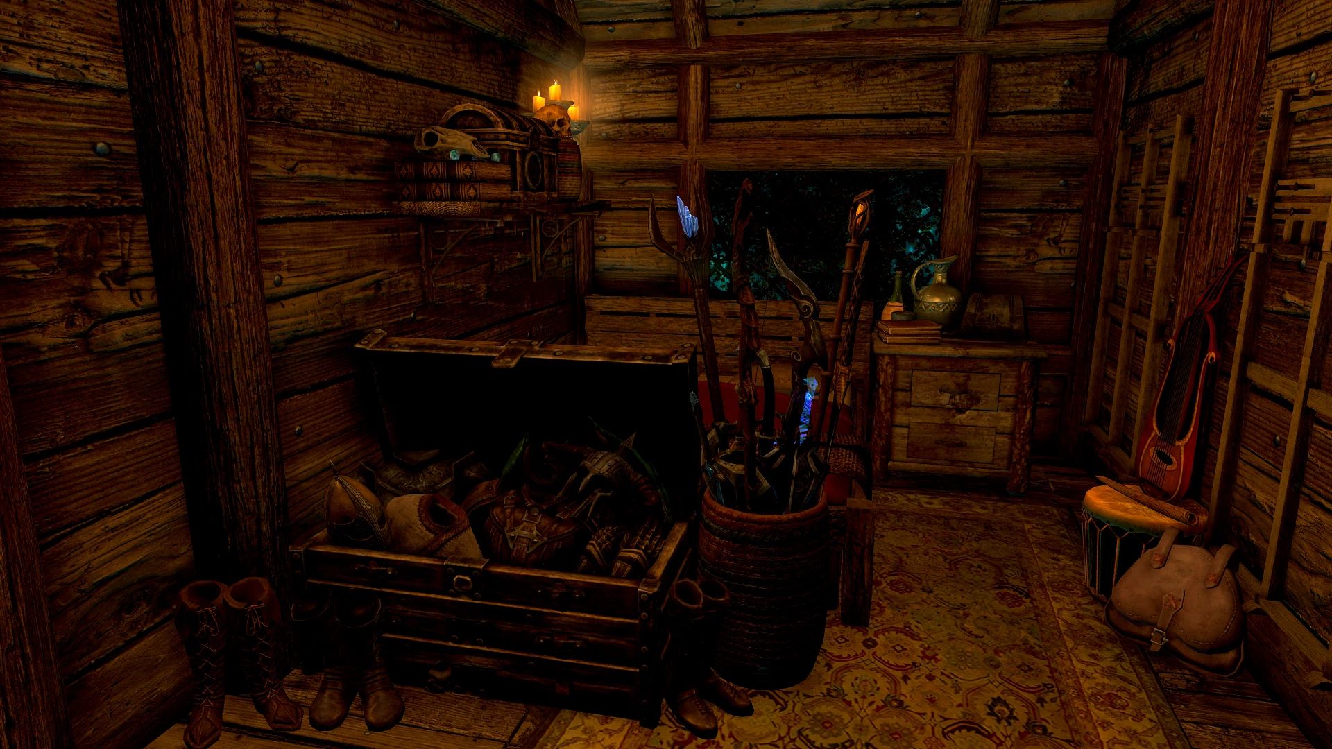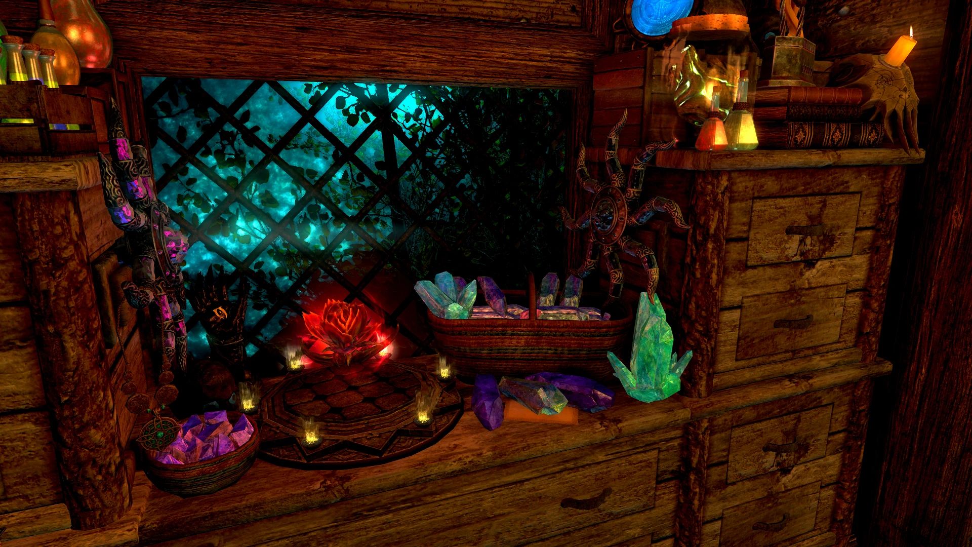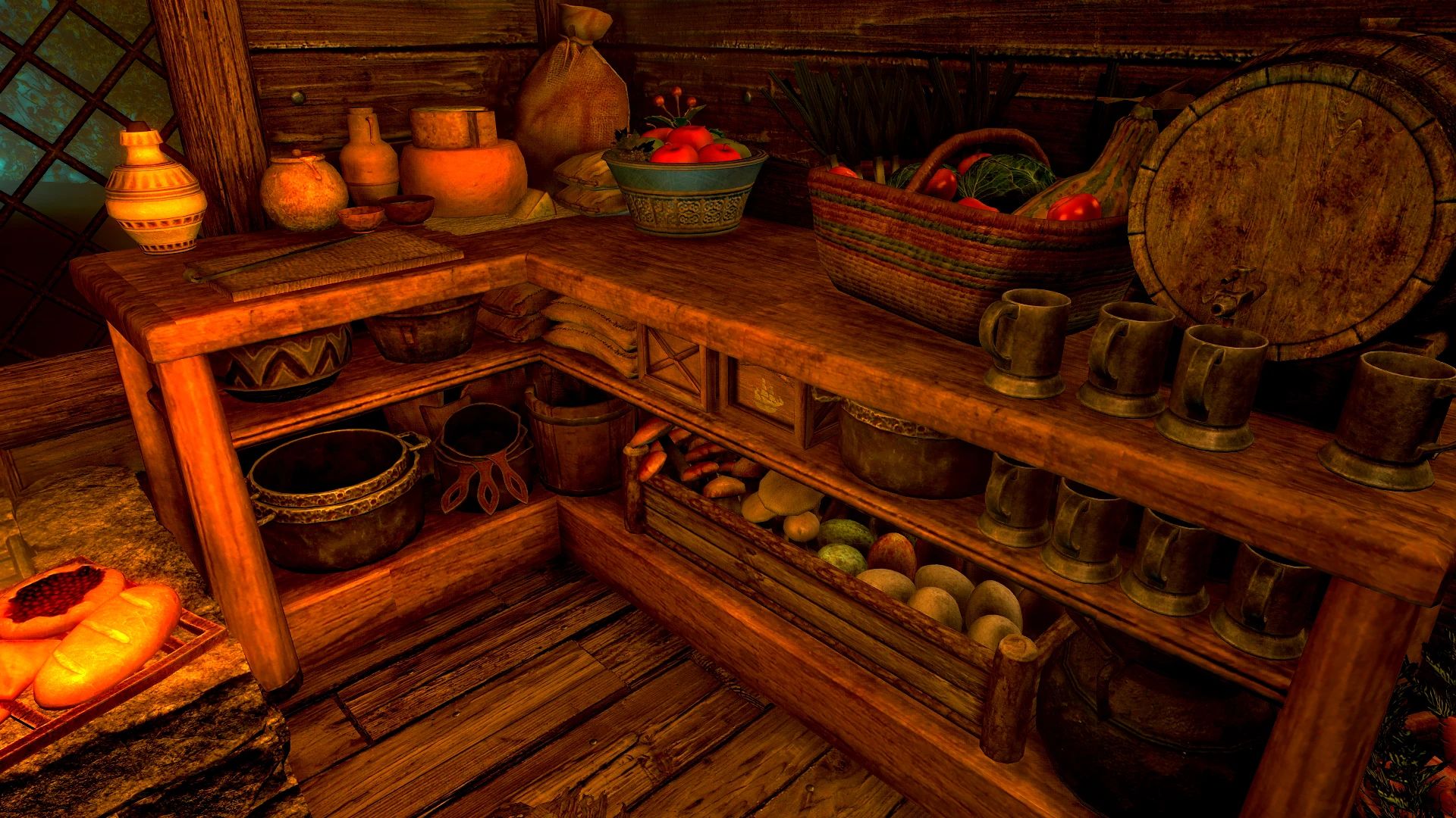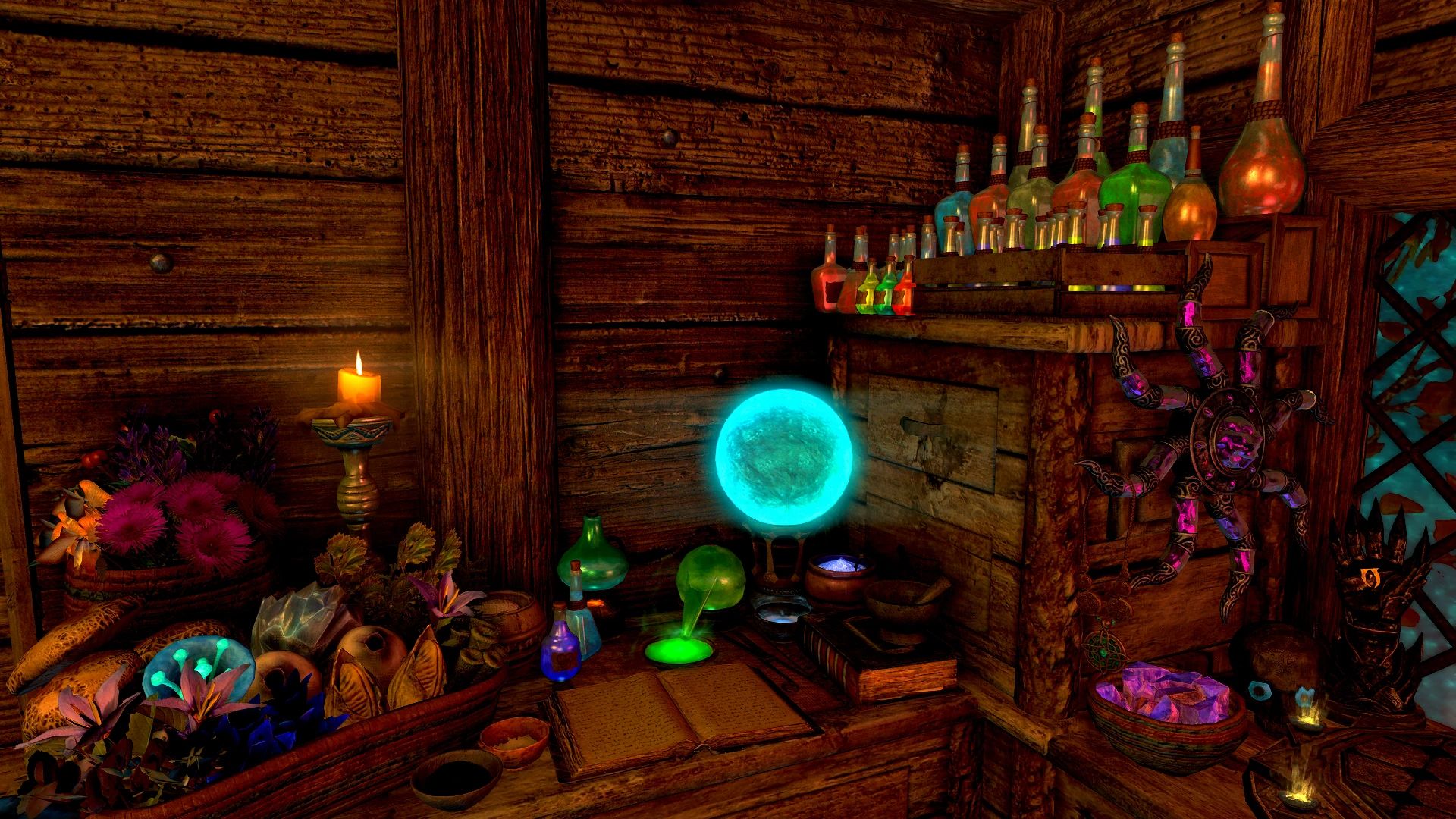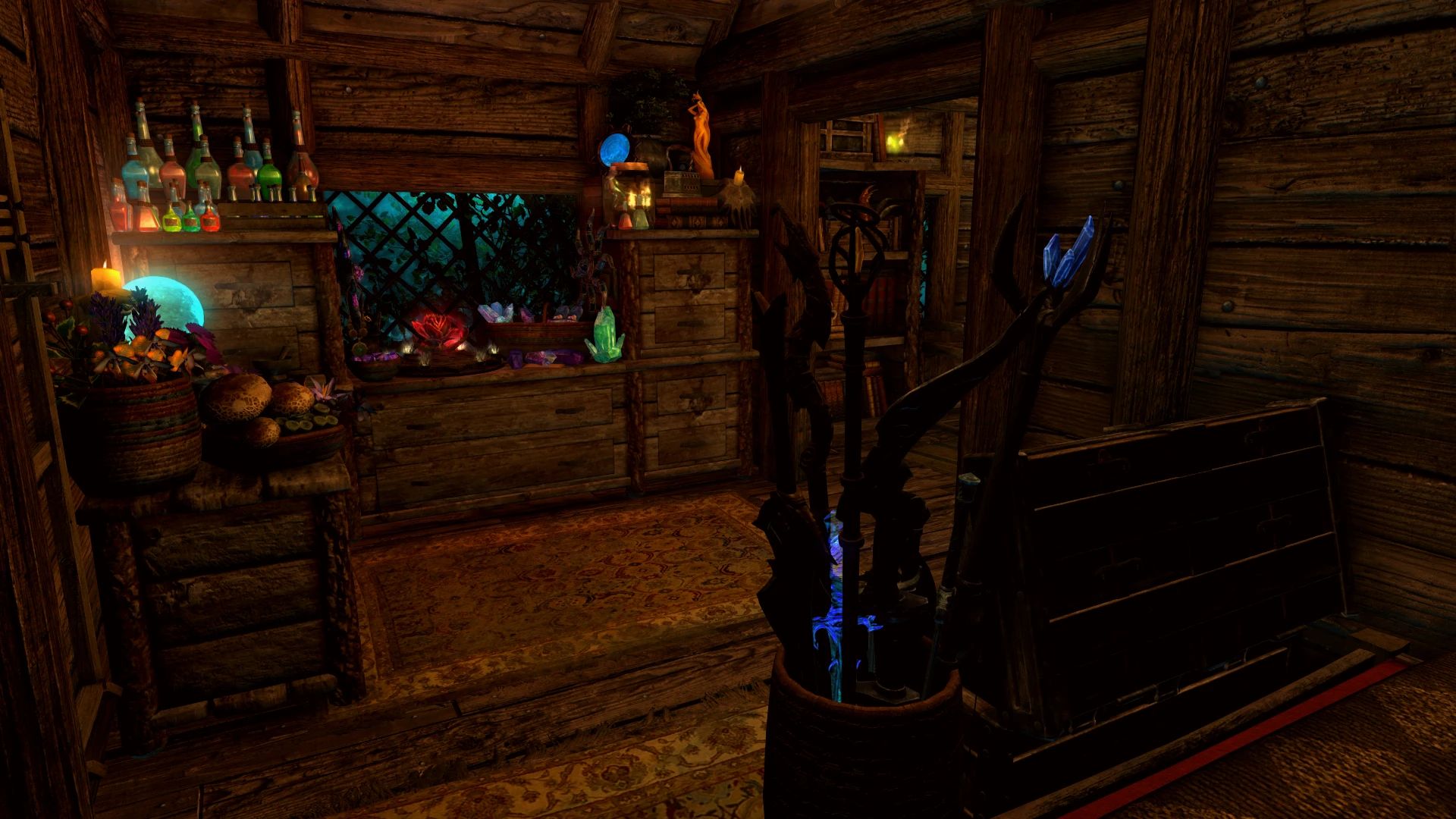 - Бутылка, которая перенесёт вас в дом из любой точки мира и вернёт вас обратно после работы Четыре кашпо Hearthfire для ингредиентов или огорода Четыре идеально работающие оружейные стойки и две оружейные таблички, которые работают по вашему желанию