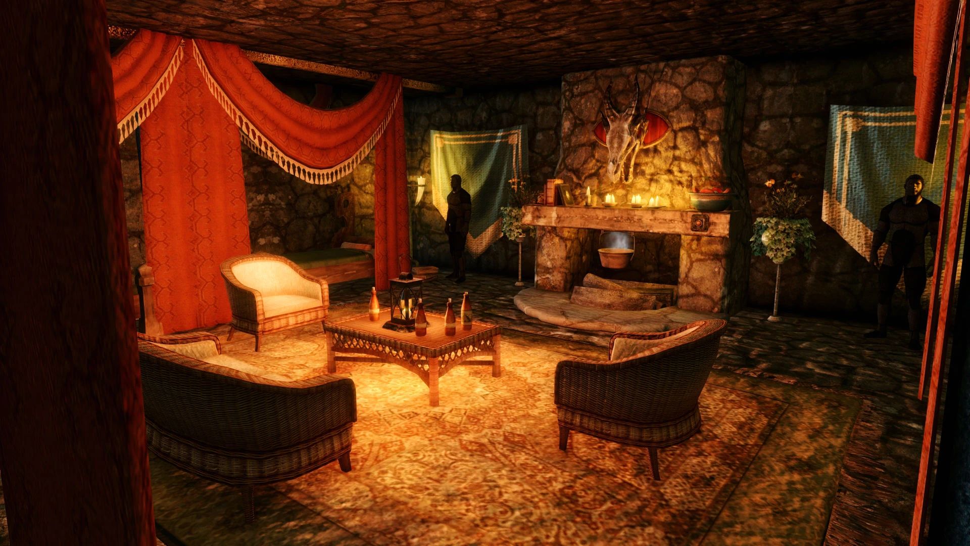 Дом без двери и большой библиотекой. Построенный на руинах старого имперского форта, этот дом расположен на седловине между двумя вершинами холмов, откуда открывается вид на долину реки, текущей на север от Айварстеда. Он расположен к северо-западу от Гейрмундс-Холла. Дом полностью оснащен навигационной сеткой, включает в себя конюшню и окна с прозрачными стеклами для открывающихся видов. Для удобства дом уже обнаружен и не требует ключа. Быстрое перемещение к нему после полной загрузки позволяет полностью загрузить дом; если он кажется загруженным наполовину, просто быстрое перемещение туда снова, чтобы исправить ошибку.