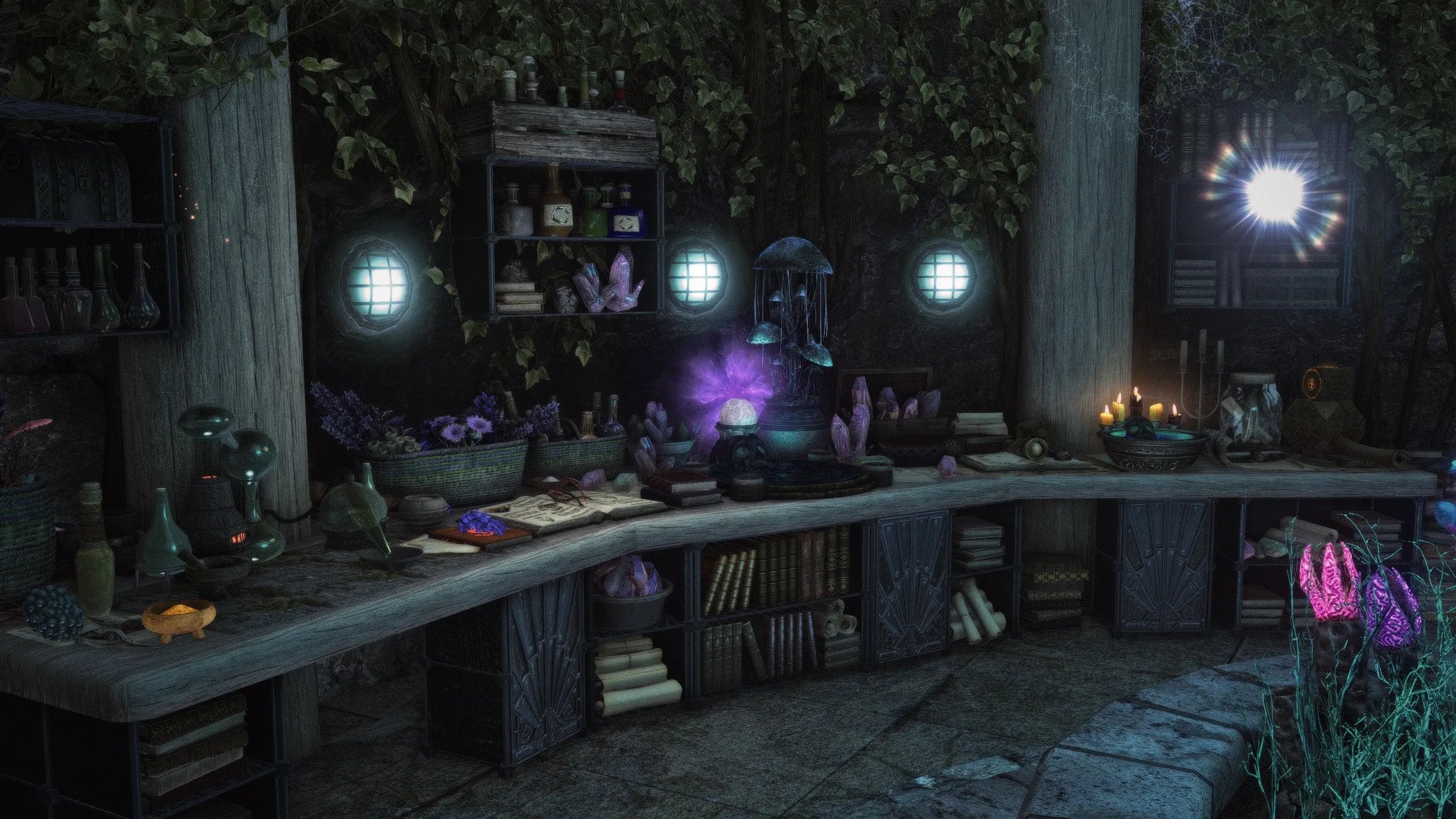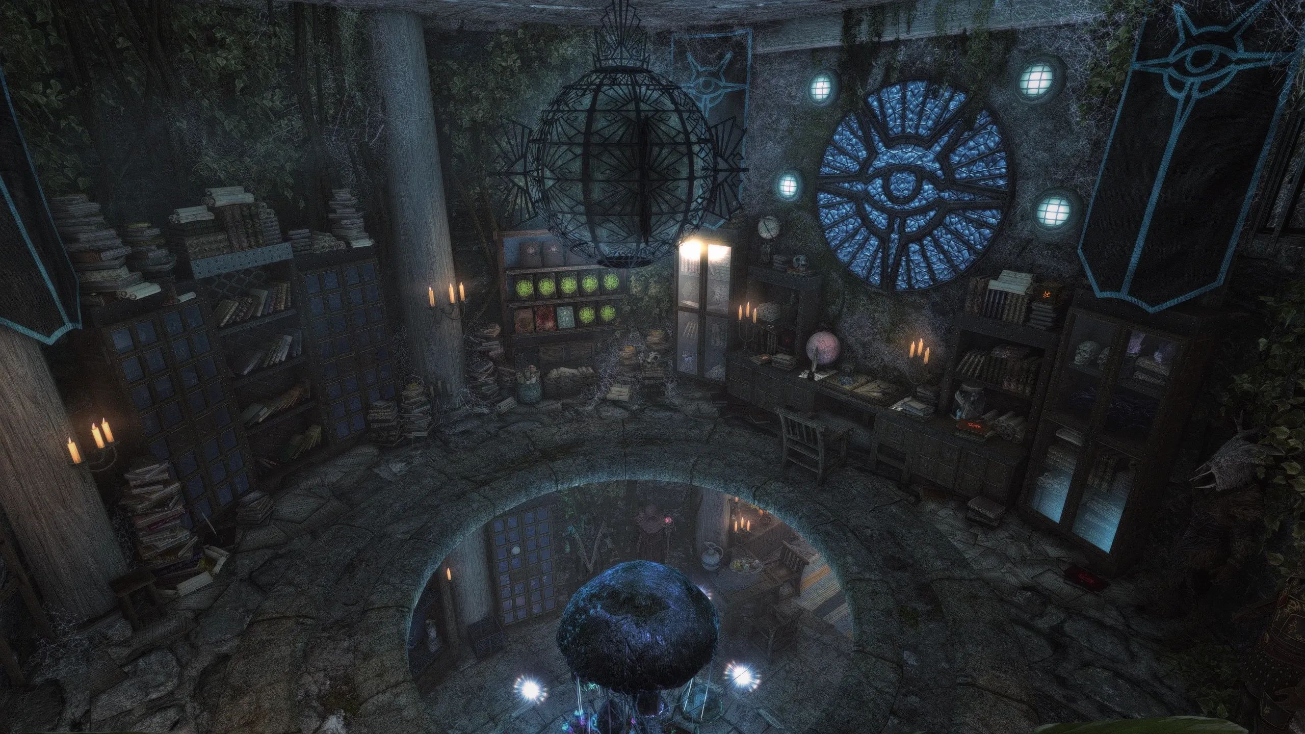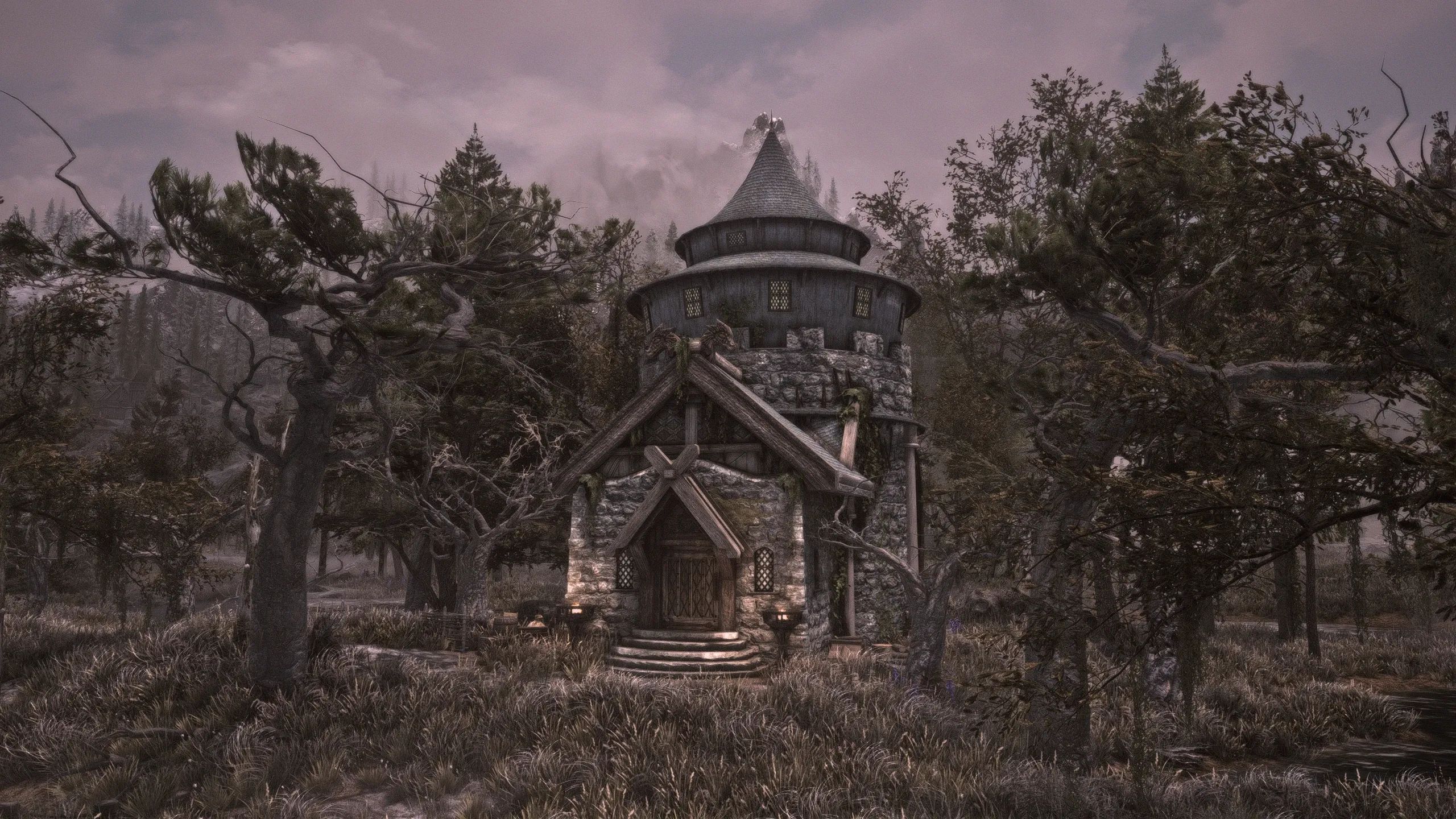 Изначально созданная для Skytim LE, эта версия представляет собой порт эпической башни волшебника или мага, построенной на болоте Морфал прямо за доками Солитьюда. Созданная для конкурса моддинга на Reddit, она включает в себя уникальный дом, несколько улучшений предметов мага, множество уникальных витрин, великолепный уровень библиотеки и кучу блестящих безделушек, от которых у вас слюнки текут.