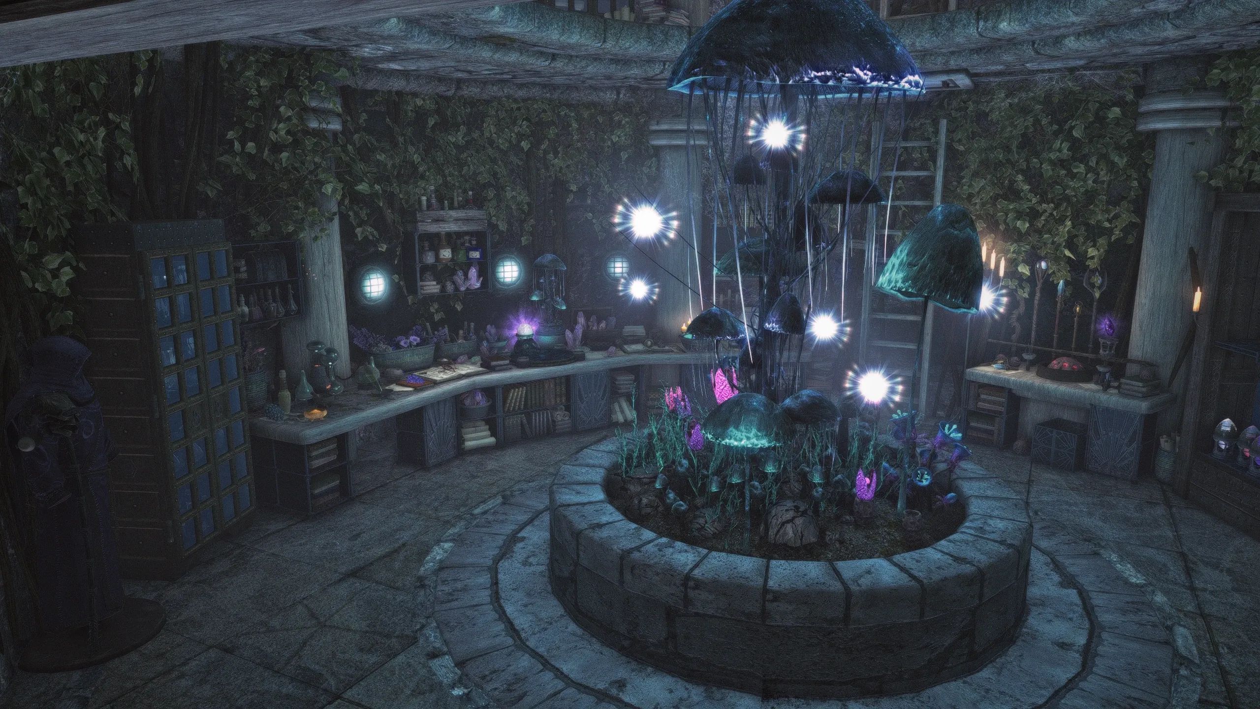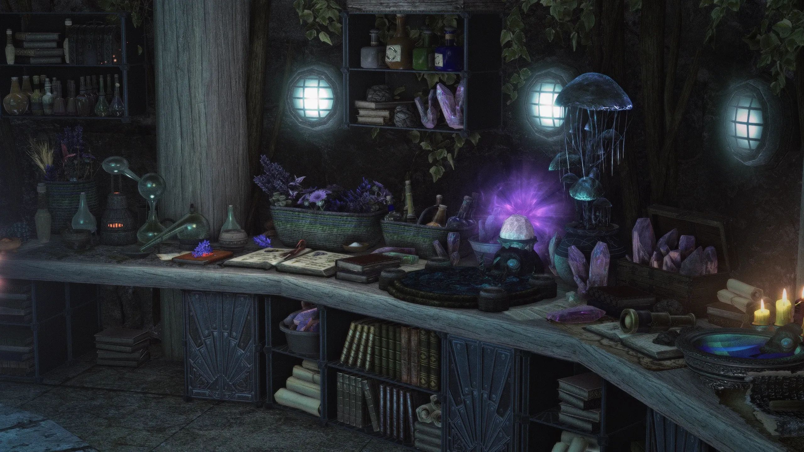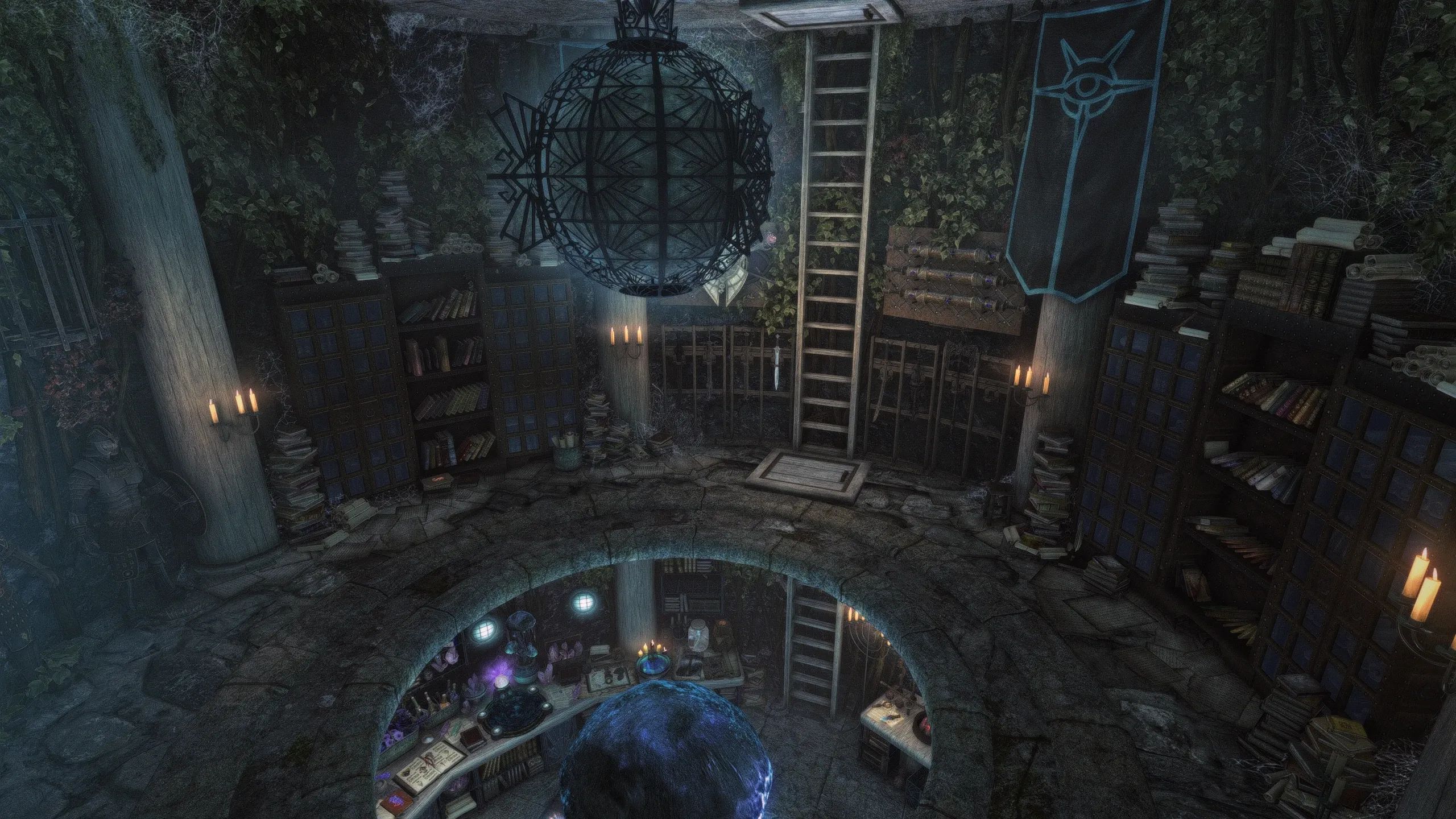 Изначально созданная для Skytim LE, эта версия представляет собой порт эпической башни волшебника или мага, построенной на болоте Морфал прямо за доками Солитьюда. Созданная для конкурса моддинга на Reddit, она включает в себя уникальный дом, несколько улучшений предметов мага, множество уникальных витрин, великолепный уровень библиотеки и кучу блестящих безделушек, от которых у вас слюнки текут.
