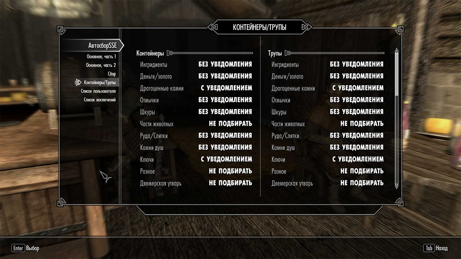 Этот мод позволит вам собирать, добывать или искать скрытые предметы, ингредиенты, золото и прочие вещи. Меню МСМ позволяет полностью настроить автоматический сбор на определенном расстоянии как на открытой местности, так и внутри помещений.