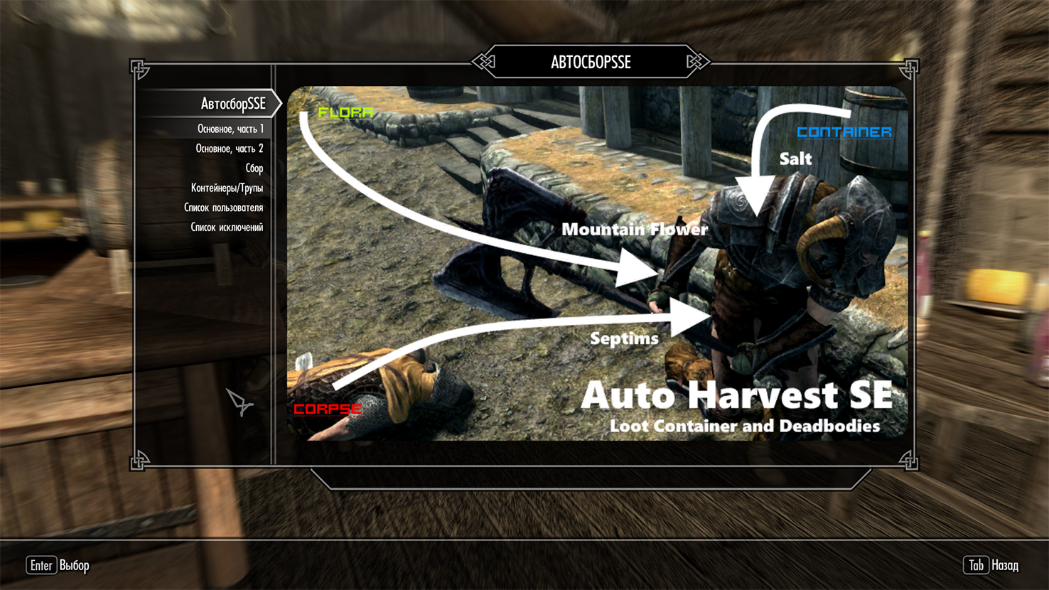 Для большего погружения есть возможность использовать заклинание автосбора, а так же мод может быть настроен на автоматический сбор на определенном расстоянии.