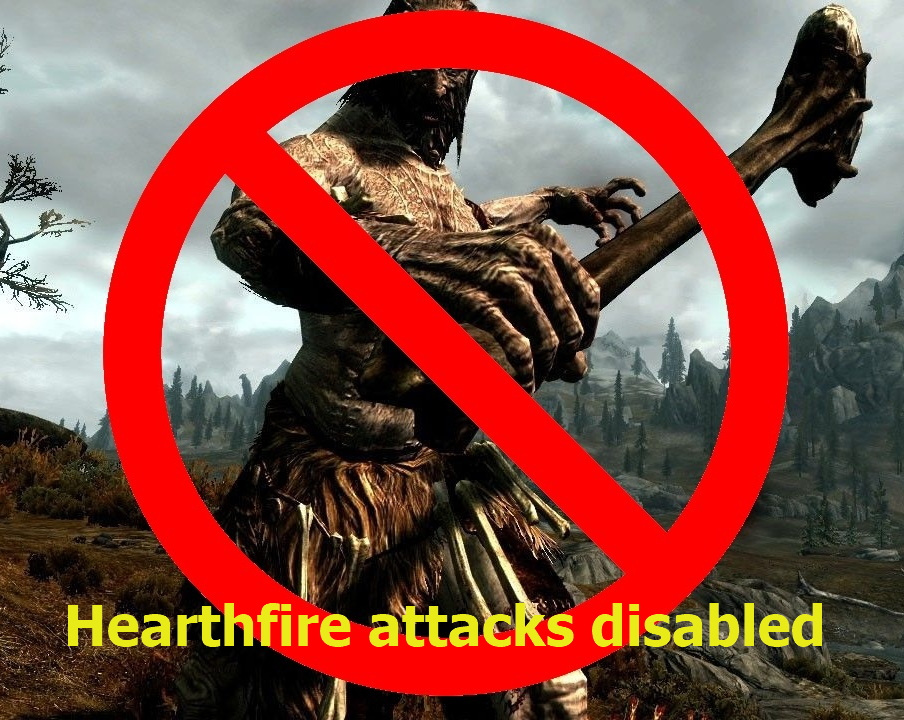 Простой мод, который отключает нападения бандитов, великанов, волков, злокрысов на поместья из дополнения Hearthfire.