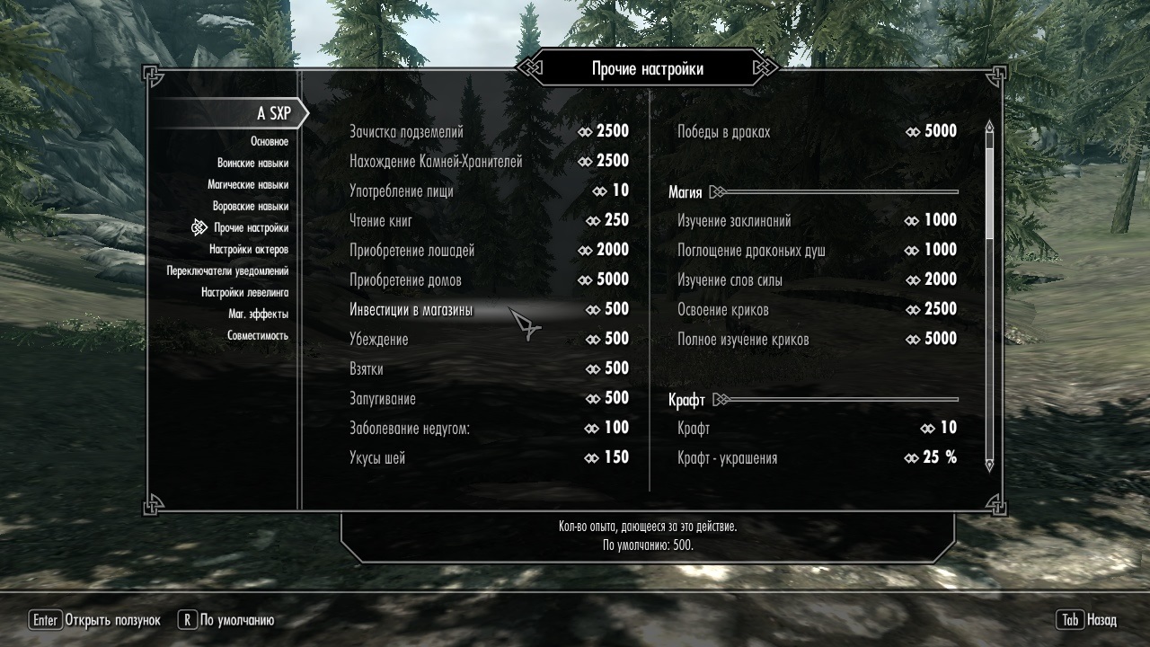 - Вкладка «Прочие настройки»: отрегулируйте кол-во получаемого опыта ото всех действий, исключая убийство актёров;