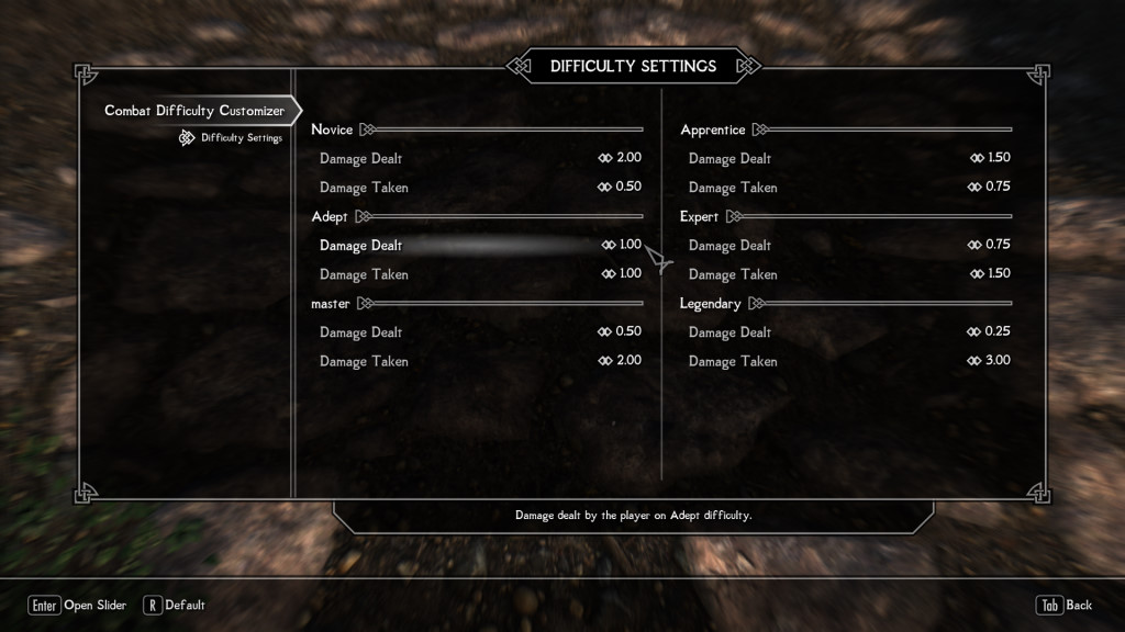 С этим модом, вы можете настроить исходящий(когда ВЫ атакуете NPC) и входящий(когда ВАС атакуют NPC) урон, на любом уровне сложности.