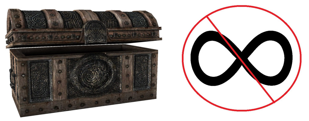 Данный мод усложняет Skyrim и делает его сложнее, теперь вы не сможете положить бесконечное количество вещей в сундук или в любой другой контейнер, а также появился вес стрел, золота и отмычкам и все это добро весит 0.1, также вы не сможете дать все вещи своему спутнику, а также спутник может взять только 100 стрел.