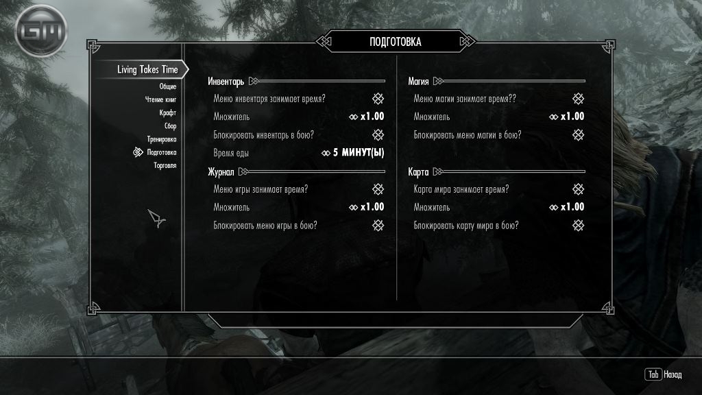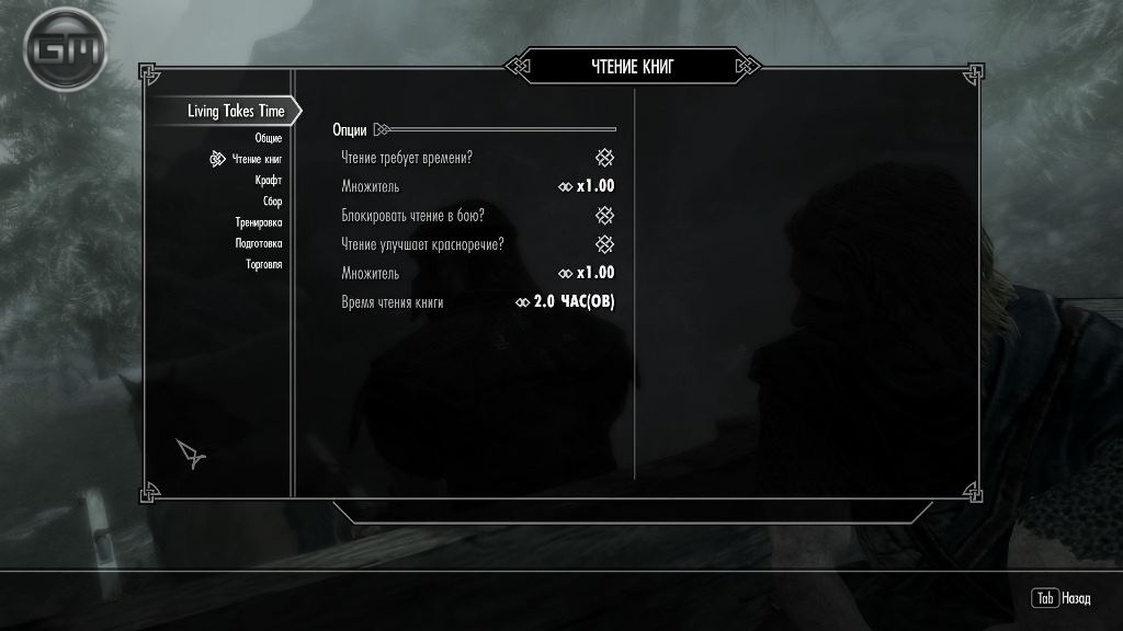 - Фактически мод просто прокручивает игровое время по заданным параметрам в меню мода. Мод совместим со всеми книгами, едой, броней и оружием от всего DLCs и сторонних модов.
