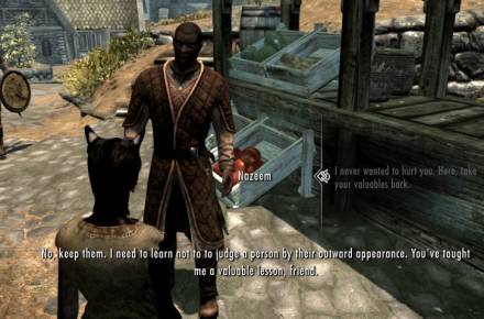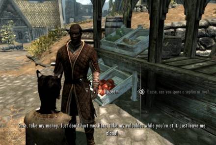 Этот мод дает возможность просить у НПС монетки. Реакция у NPC на ваши попрошайничество разная. Та же в Рифтене, в таверне, у Беллы есть кольцо нищего.