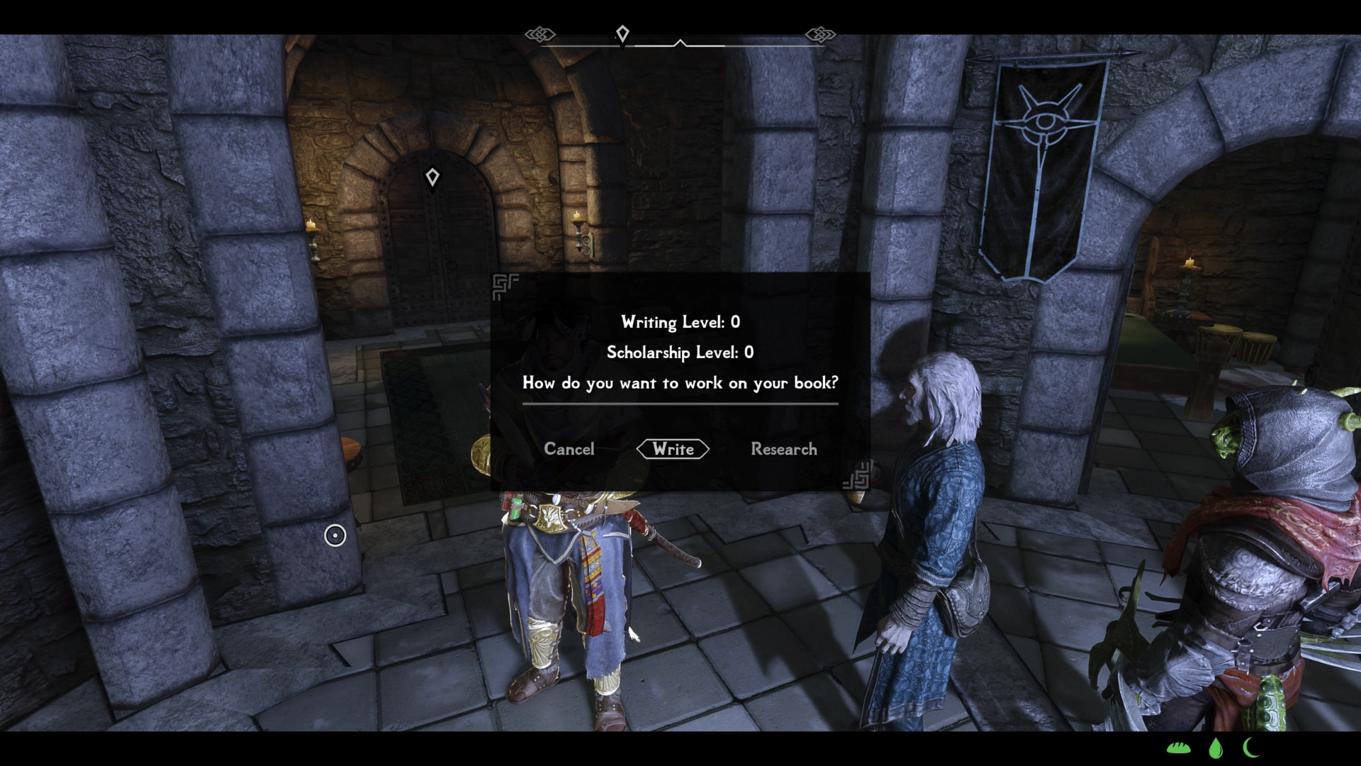 Вы можете писать лучшие книги с помощью исследований! Исследования принимают разные формы: обучение в Арканеуме, сотрудничество с другими учеными или изучение руин, имеющих отношение к вашей теме. По мере того, как вы проводите исследования, ваш уровень "Написания" повышается, что позволяет создавать лучшие книги. Однако, новичок не может написать по-настоящему великую книгу только потому, что он много исследовал. По мере того, как вы создаете больше готовых работ, ваш уровень "Учёности" также растёт. Чем выше ваш уровень Письма и уровень Учёности, тем лучше будет итоговая книга.
