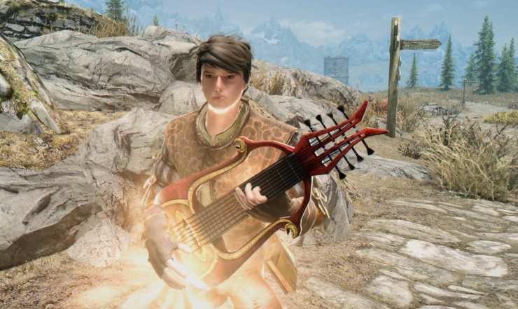 Всё, что вам нужно, это лютня в инвентаре и наличие определенного перка в дереве навыка "Красноречие":