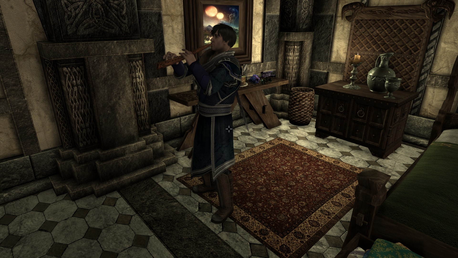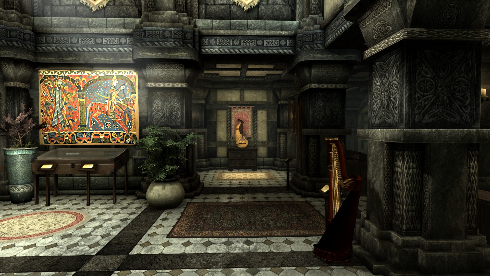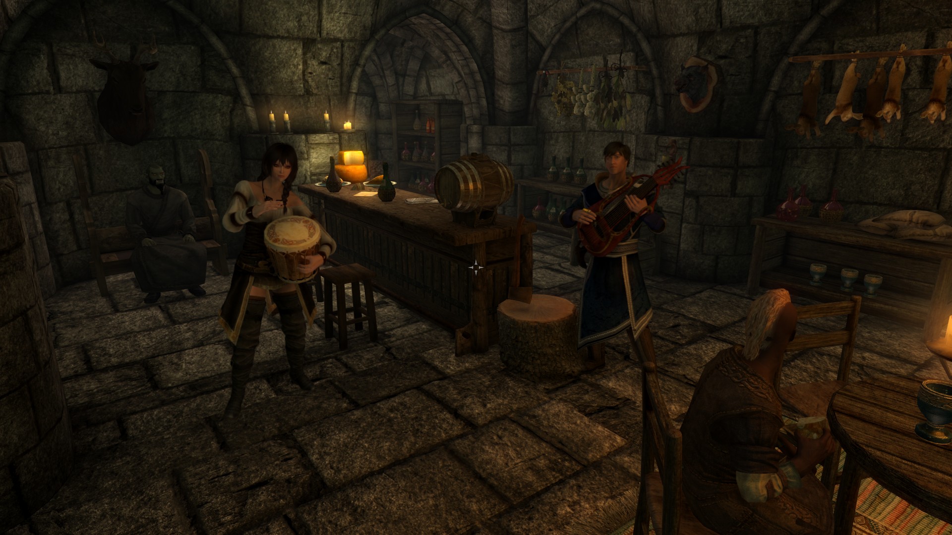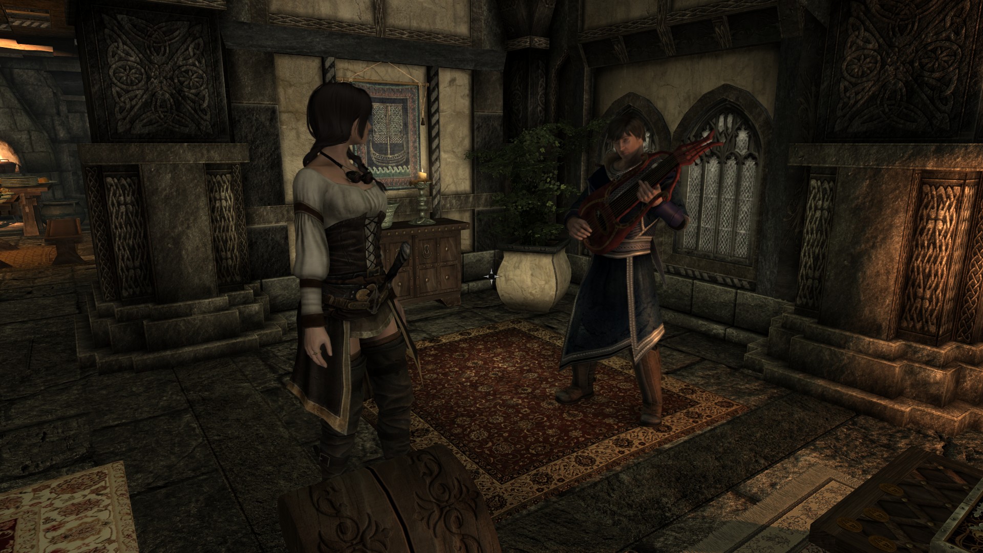 Коллегия бардов значительно расширена и улучшена. Появились новые комнаты для бардов, комната для вас на период обучения и комната для компаньона, дополнительные помещения с крафтовыми станциями, алтарями, а также купальня (за основу взят мод Tweaked Bards College). Есть отдельная комната в башне, которая станет вашей по окончании обучения. Добавлены статуи, картины и множество книг, музейные экспонаты (уникальные инструменты) с табличками, при активации которых появляется сообщение с описанием экспоната. Добавлено несколько НИПов - студентов со своими диалогами и бард Малука, которая будет вашим наставником в Коллегии. Также добавлены новые диалоги ванильным персонажам. Кроме того, вы можете сделать пожертвование Коллегии, поговорив с Виармо. Это даст вам благословление, которое повысит ваш навык красноречия. Все НИПы озвучены на английском языке.