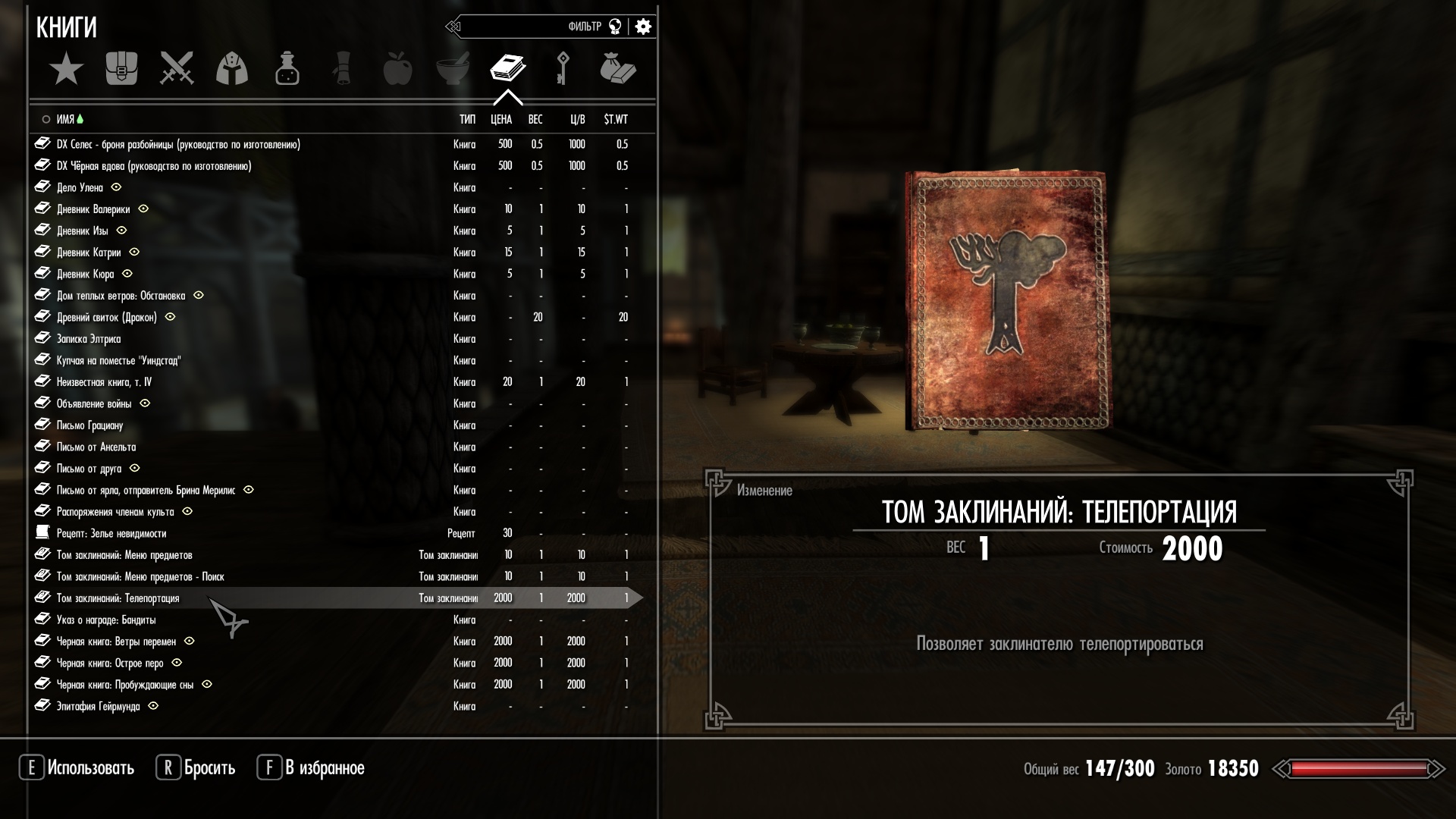 Мод добавляет в игру заклинания 2 заклинания: Телепортация и Настройка телепортации. С помощью Настройки телепортации можно создать 30 пометок к которым можно телепортироваться с помощью заклинания Телепортация. Созданные пометки можно переименовать или удалить. Чтобы после телепортации вернуться в то место, откуда вы телепортировались, используйте заклинание телепортации в режиме скрытности. Тома с заклинаниями находятся в Лабиринтиане. Туда можно попасть при прохождении квестов Коллегии Винтерхолда.