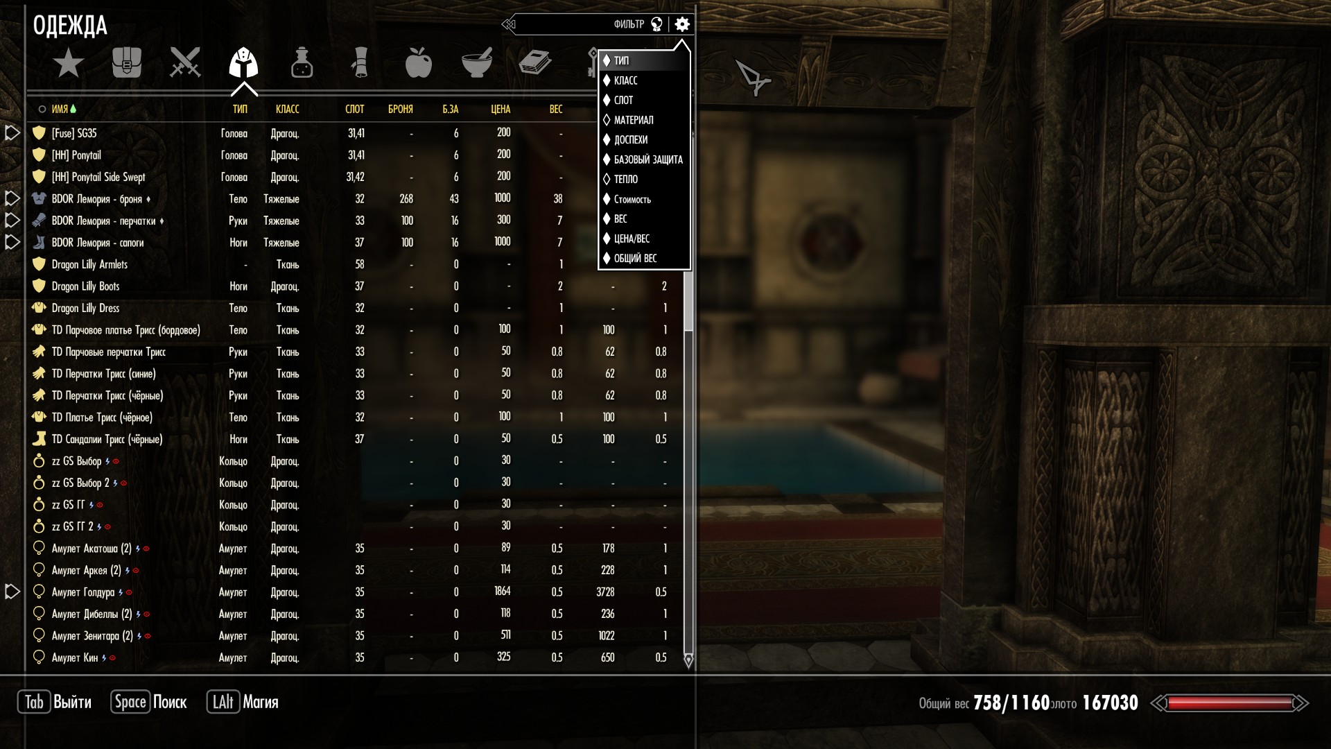 По умолчанию в версии мода 7.4 (для Skyrim SE/AE v1.6.x) предметы в инвентаре сортируюся таким образом, что первыми показываются экипированные предметы. Чтобы сортировка была только по имени надо в файле конфига config.txt найти