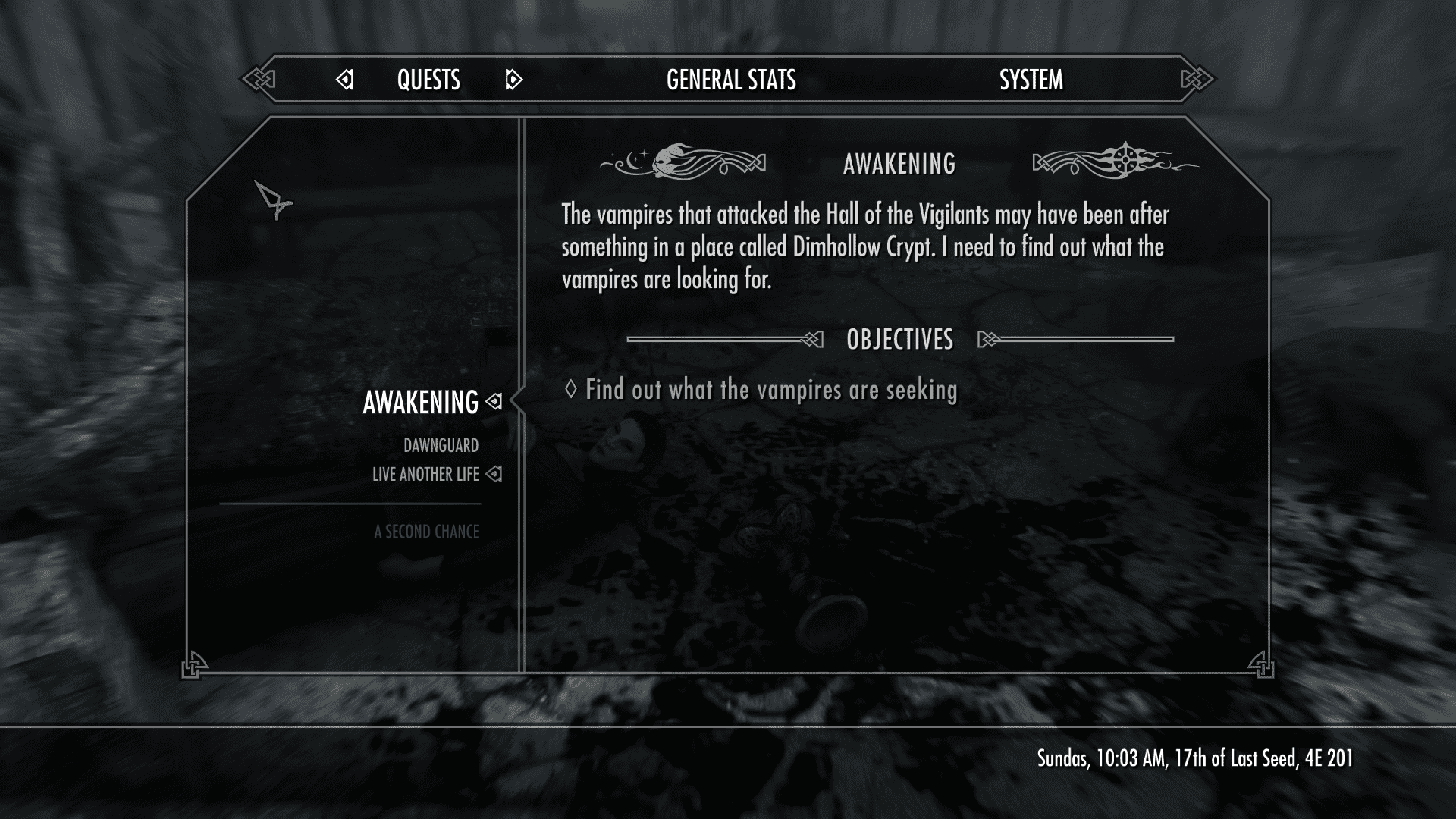 Этот мод изменяет некоторые вещи в начале квестовой линейки дополнения. Теперь есть 2 пути начала квеста. После того, как зал дозорных Стендара уничтожен Вы можете осмотреть это место или сразу отправиться в крипту Ночной Пустоты. Доступны разные варианты диалога с Сераной, которые зависят от того говорили ли Вы с Израном.