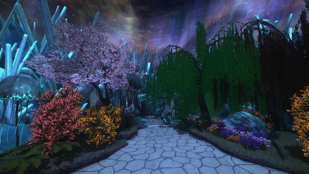 Царство настолько красиво, что посещающие его смертные наполовину слепнут. Царство содержит цветы, светящиеся грибы и водопады, величественные деревья, гигантские кристаллы и город серебра. Ветер пахнет духами, небо находится в постоянном сумерках, и, как известно, царство обладает присущим ему светом. Азура живет в розовом дворце и приветствует смертных путешественников. Здесь обитают несколько видов существ, таких как крылатые сумерки, сумеречные пантеры, лунные циклопы, хрустальные черепахи, дельфины, ядовитые слизни и другие. В кристаллических долинах Лунной Тени есть несколько Залов Воспоминаний - красивых айлейдских палат с функцией хранения воспоминаний внутри кристаллических сфер, от сильных форм и архетипов всех живых существ Тамриэля, живших на протяжении веков. И именно вам предстоит их одолеть. Справитесь? Нет? Покажут лишь бесчисленные попытки. Удачи.