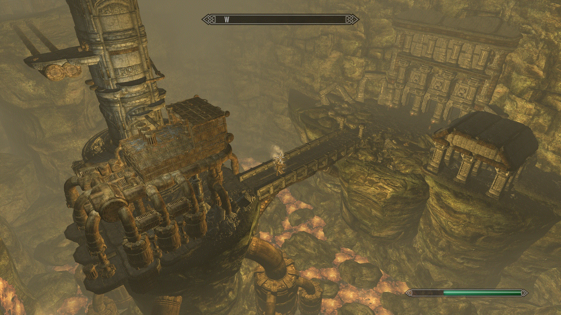 Первой частью подземелья будут руины Двемеров, превращенные в электростанцию путешественниками во времени. Эта область содержит вторичный геотермальный источник энергии из бассейнов магмы, разбросанных по всей камере. Повсюду подстерегают ловушки и враги.