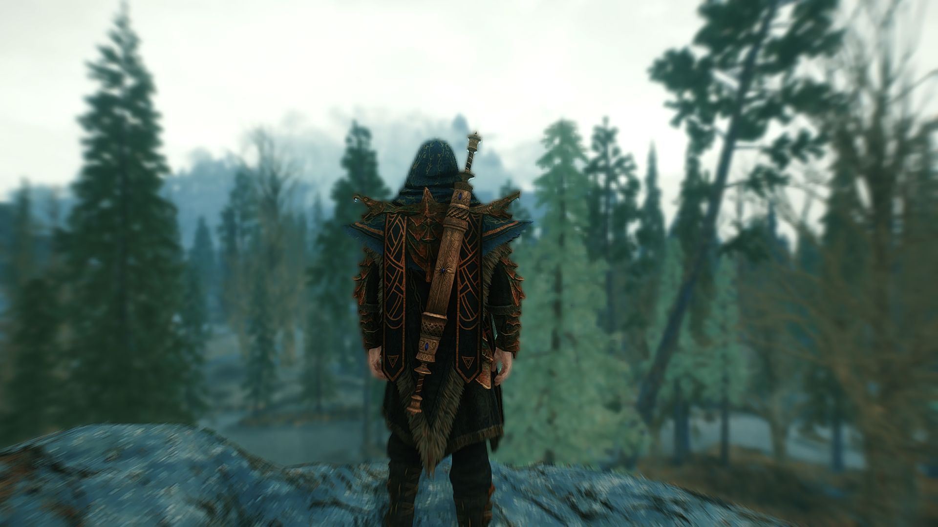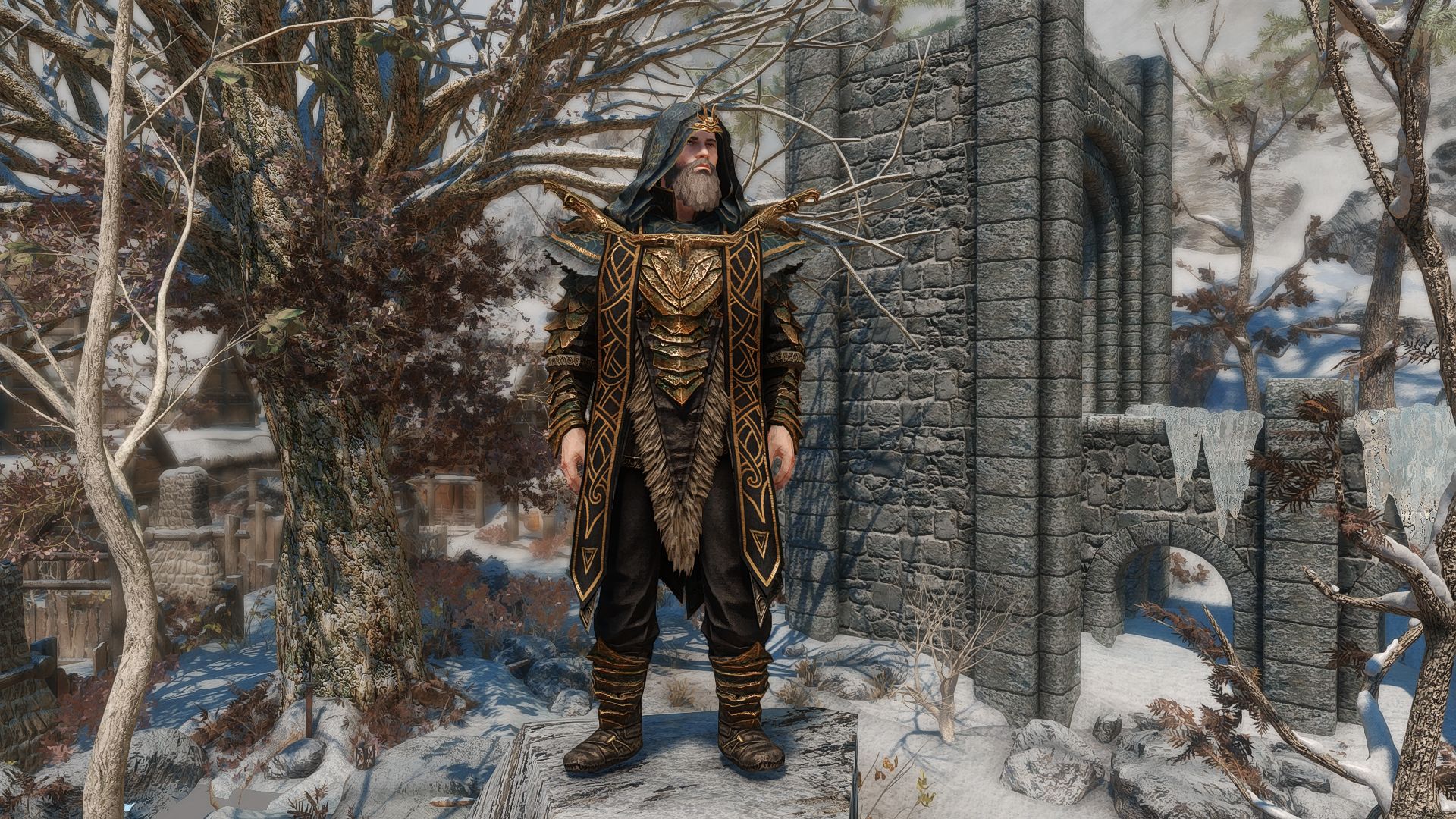 Набор представлен в мужском варианте с поддержкой зверорас, включает в себя капюшон, робу, перчатки и сапоги. Все предметы по умолчанию являются лёгкой бронёй, но есть опциональный плагин, с которым они станут одеждой. Если хотите, замените им исходный файл.