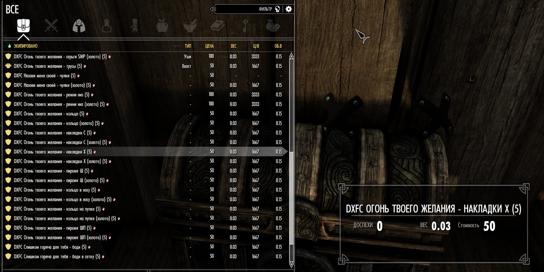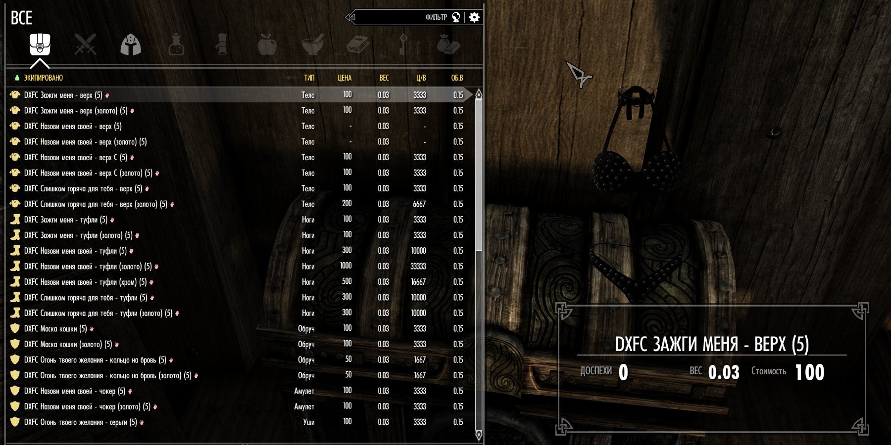 Порт мода Fetish Fashion Volume 1 из Fallout 4 в Skyrim SE/AE. Мод добавляет в Skyrim SE несколько откровенных нарядов с большим количеством разных аксессуаров. Есть поддержка физики CBP. Серьги поддерживают физику HDT-SMP. Найти всю одежду можно в доме Изольды в Вайтране, в сундуке в комнате справа от входа. (Оказывается, женщины в Вайтран те ещё извращенки! Неудивительно, почему Вайтран считается центром мира. =))