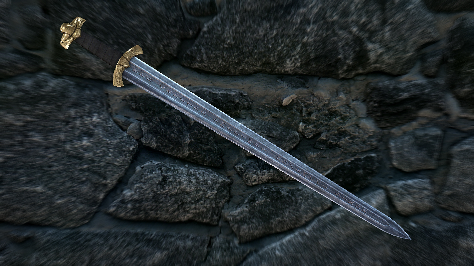 - рунный - можно только найти. В игре есть всего два рунных меча, один находится в гробнице Исграмора, другой - в Форелхосте. В небесной кузнице можно перековать одноручные рунные мечи в двуручные (необходим навык кузнец-волшебник). Зачарование рунных мечей имеет уникальный визуальный эффект и наносит цели дополнительный урон огнём, не требует подзарядки и его невозможно изучить на пентаграмме душ.
