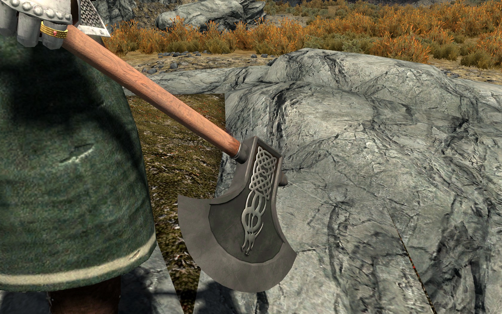 Мод добавляет новое оружие - топор драконьей дружины, вдохновлённый топором разбойника из Dark Souls.