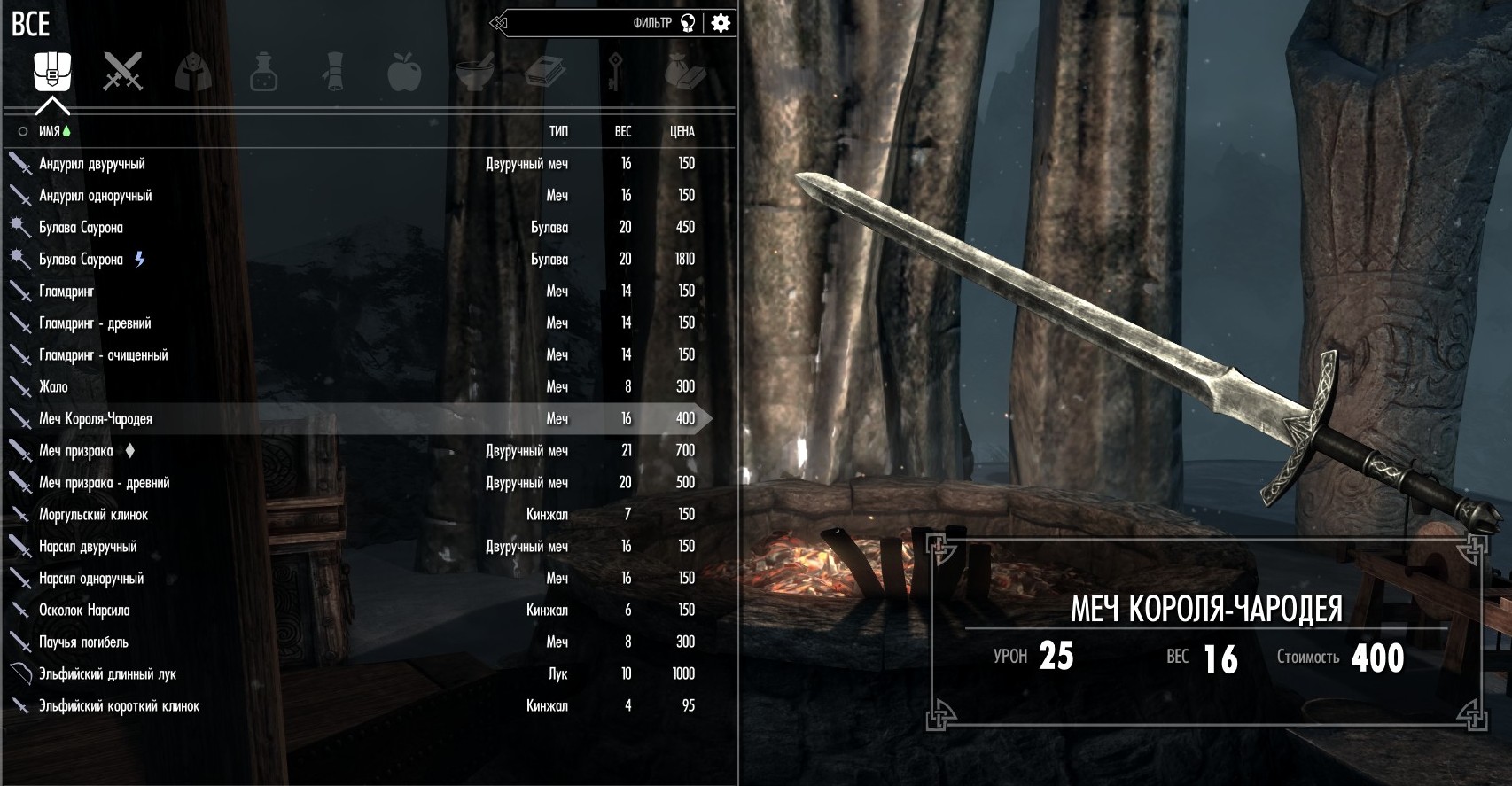 Мод добавляет в Skyrim SE большое количество оружия в высоком разрешении из Властелина колец от Isilmeriel. Оружие может быть изготовлено только в Лунной кузнице, расположенной на пол пути к Высокому Хротгару (кроме осколка Нарсила, который изготавливается в плавильне). Это отдельная локация, а не кузница в лагере Тихих Лун. Вы должны владеть навыком изготовления стального снаряжения. Некоторые мечи можно купить у Йорлунда в Вайтране. Чтобы получить Булаву Саурона отправляйтесь в город Чёрного предела и сразитесь со стражем у городских ворот.