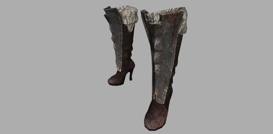Для тех, кто не принимает в Скайриме обуви с высоким каблуком, был сделал дополнительный комплект обуви с обычным каблуком, но, на мой взгляд, высокие каблуки смотрятся идеально )
